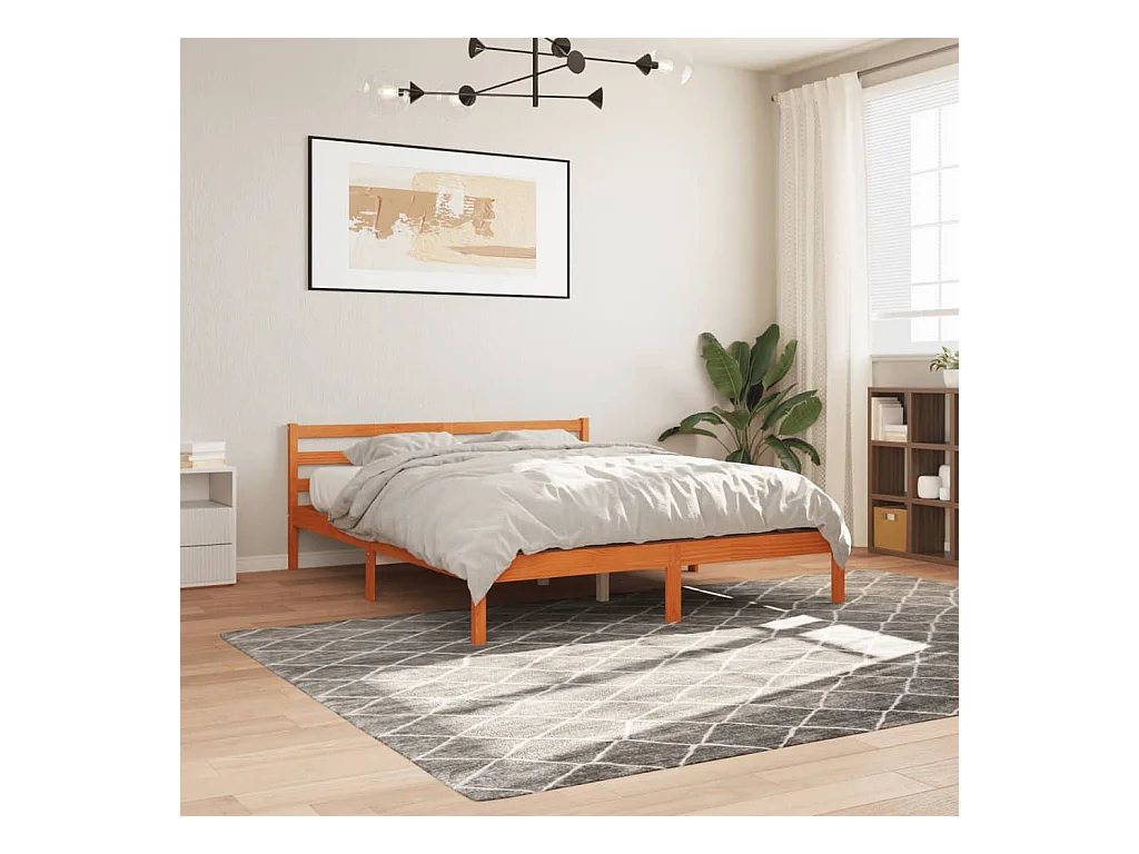Struttura letto marrone 200 x 200 cm in legno massello di pino