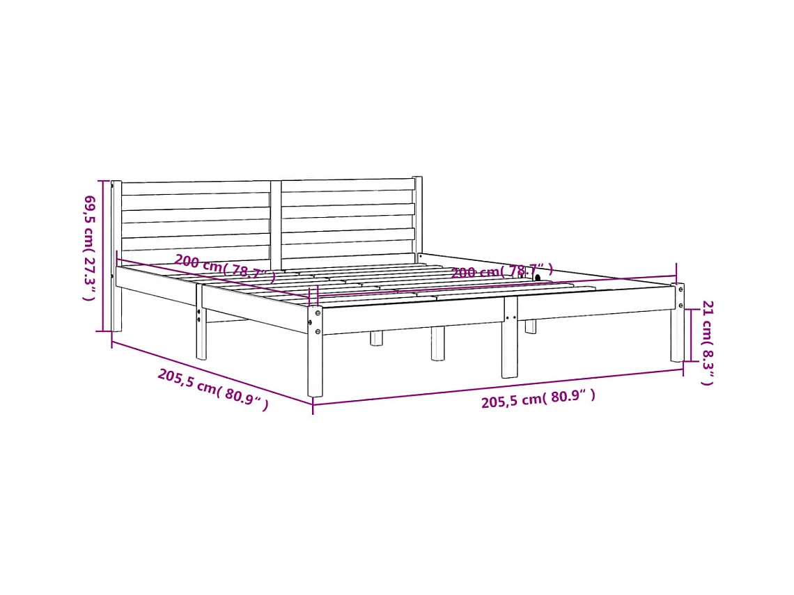 Struttura letto senza materasso 200x200 cm in legno massello di pino