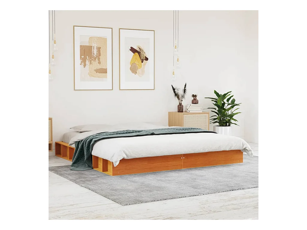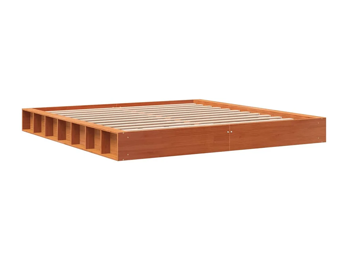 Struttura letto senza materasso, cera marrone, 200x200cm, legno massello di pino