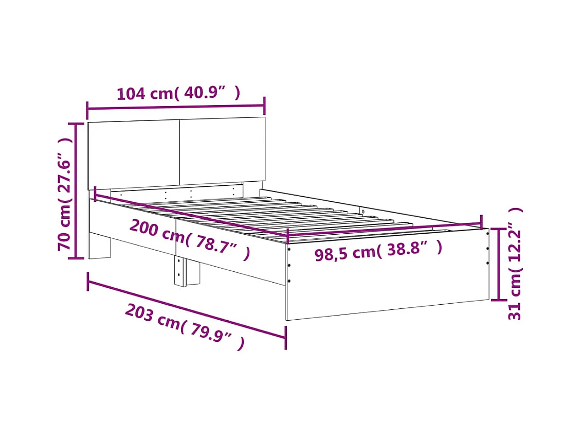 Struttura letto senza materasso con testiera 100x200 cm