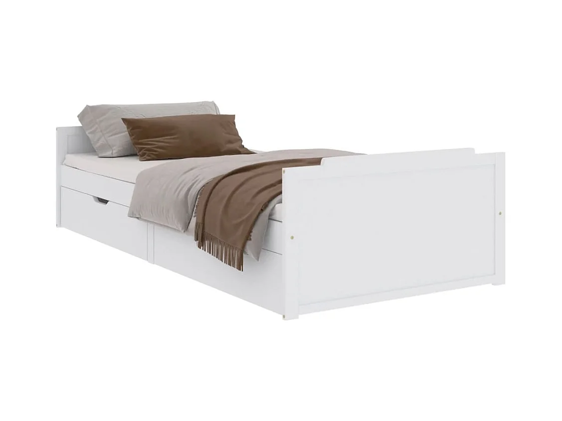 Divano letto e cassetti senza materasso bianco 90x200 cm in legno massello