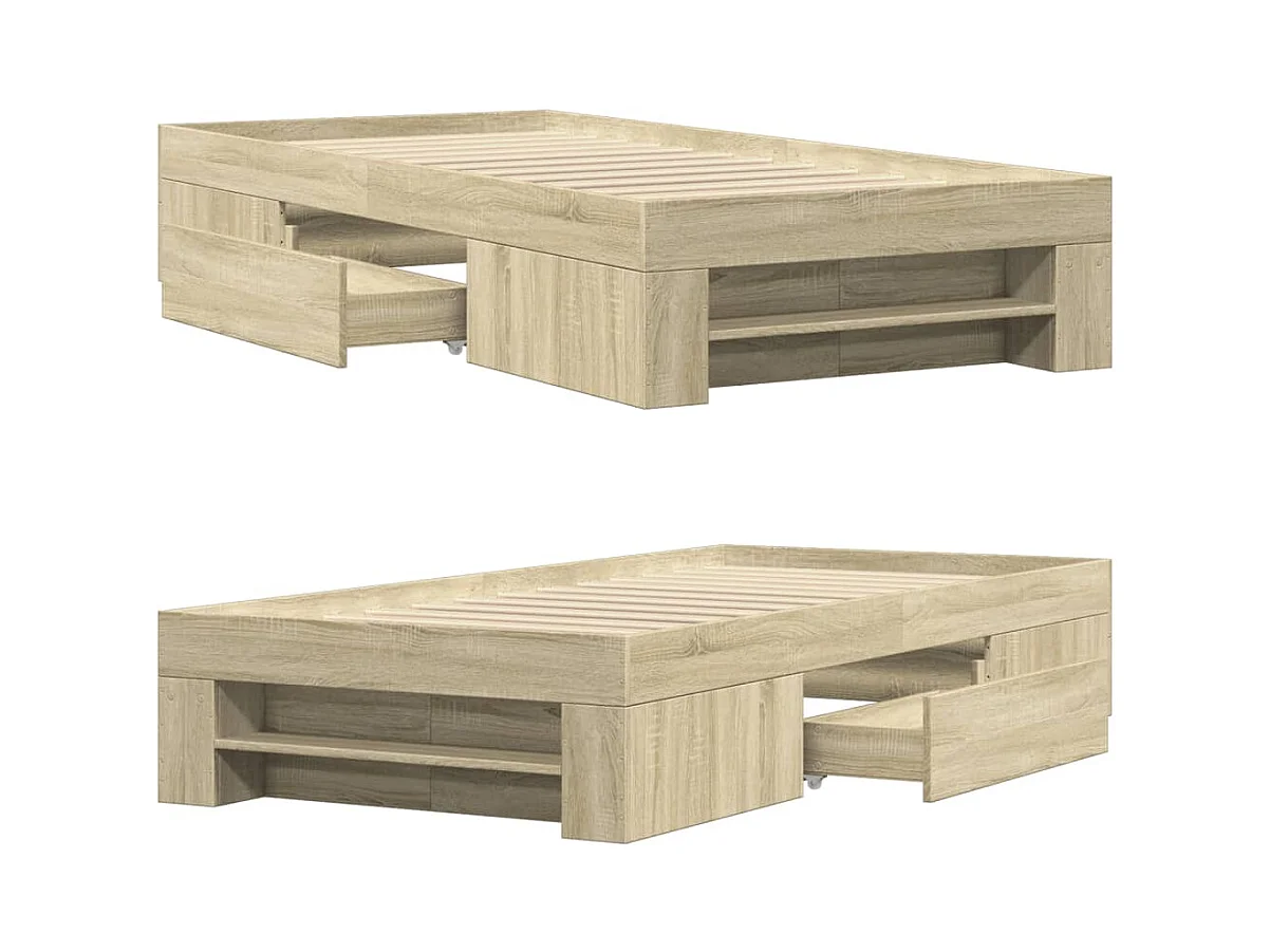 Struttura letto con cassetti senza materasso rovere sonoma 100x200 cm