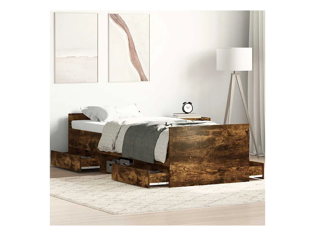 Struttura letto con cassetti senza materasso rovere affumicato 90x190 cm