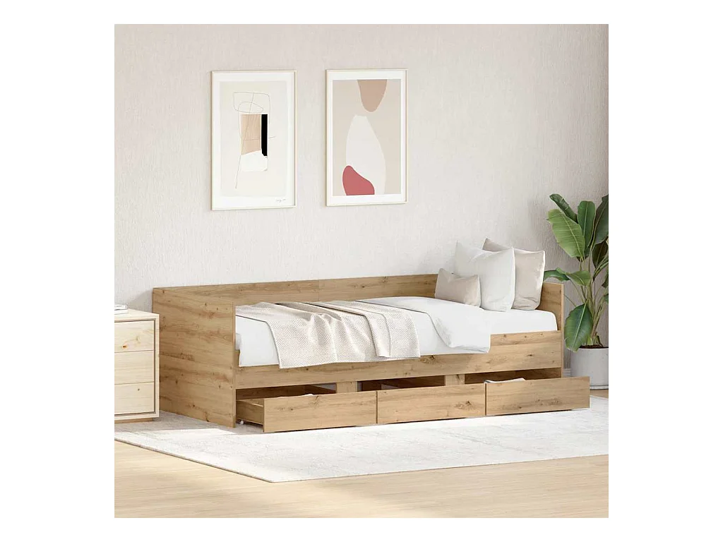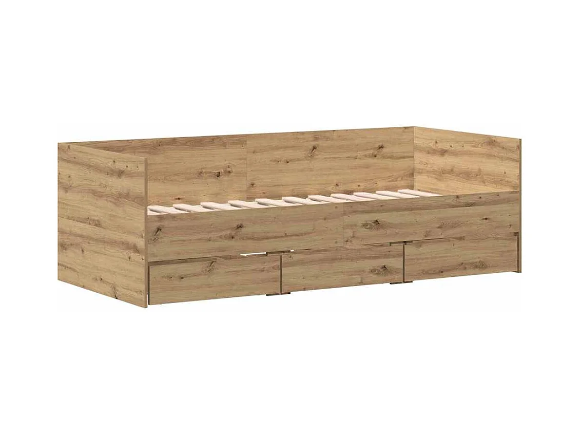Struttura per divano letto con cassetti, rovere lavorato a mano, 90 x 190 cm