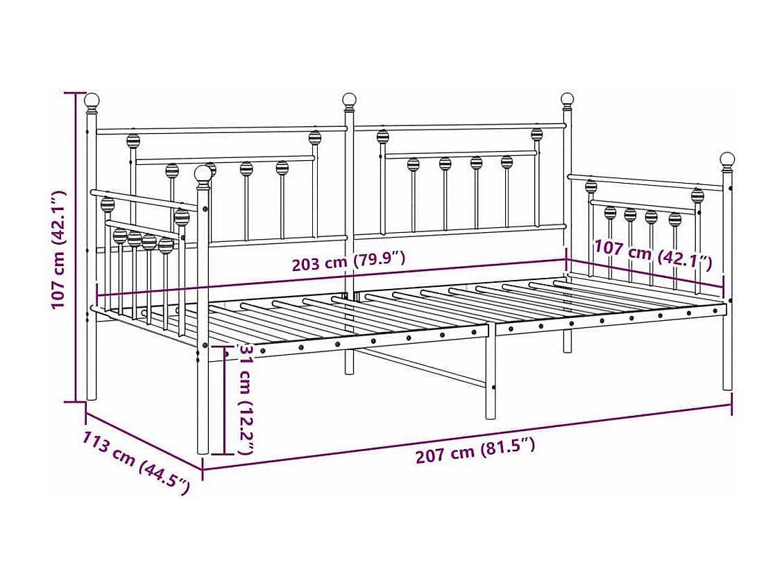 Struttura per letto di giorno Bianco 107 x 203 cm Acciaio