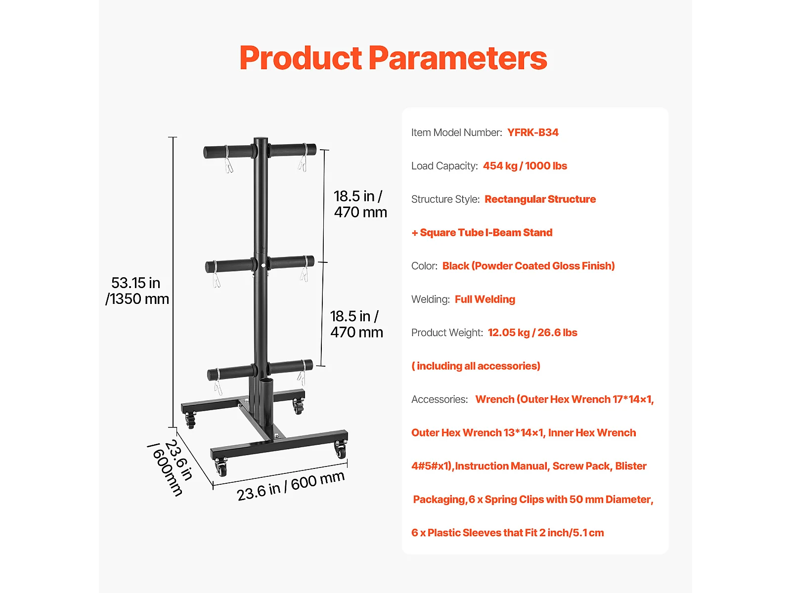 Supporto per Piastre di Peso SucceBuy, Verticale con Rotelle, per Piastre da 50,8 mm, Capacità di 454 kg