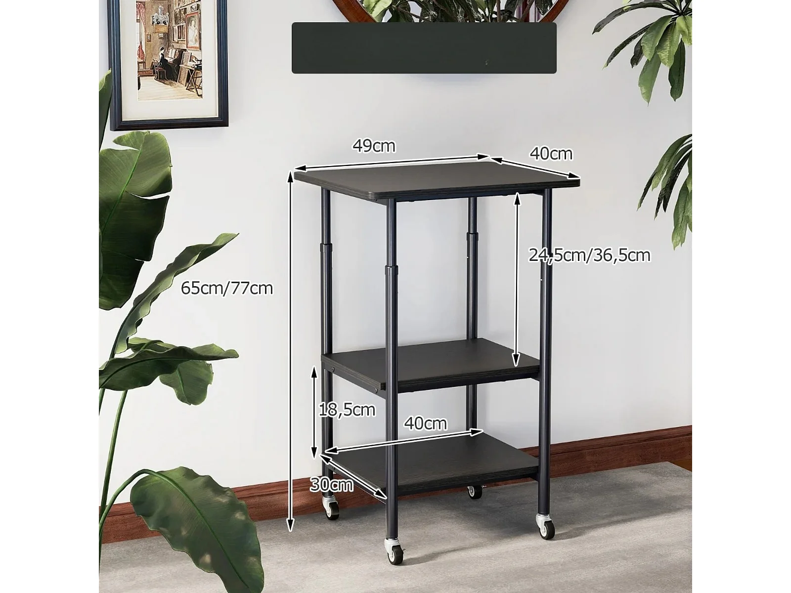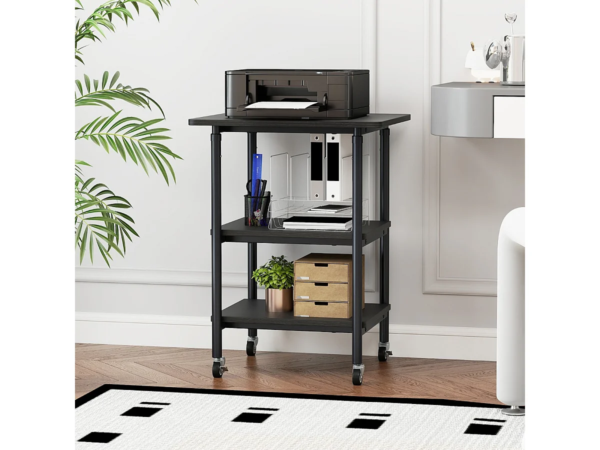 Supporto per stampante regolabile in altezza a 3 livelli con ripiani e rotelle Carrello per stampante nero