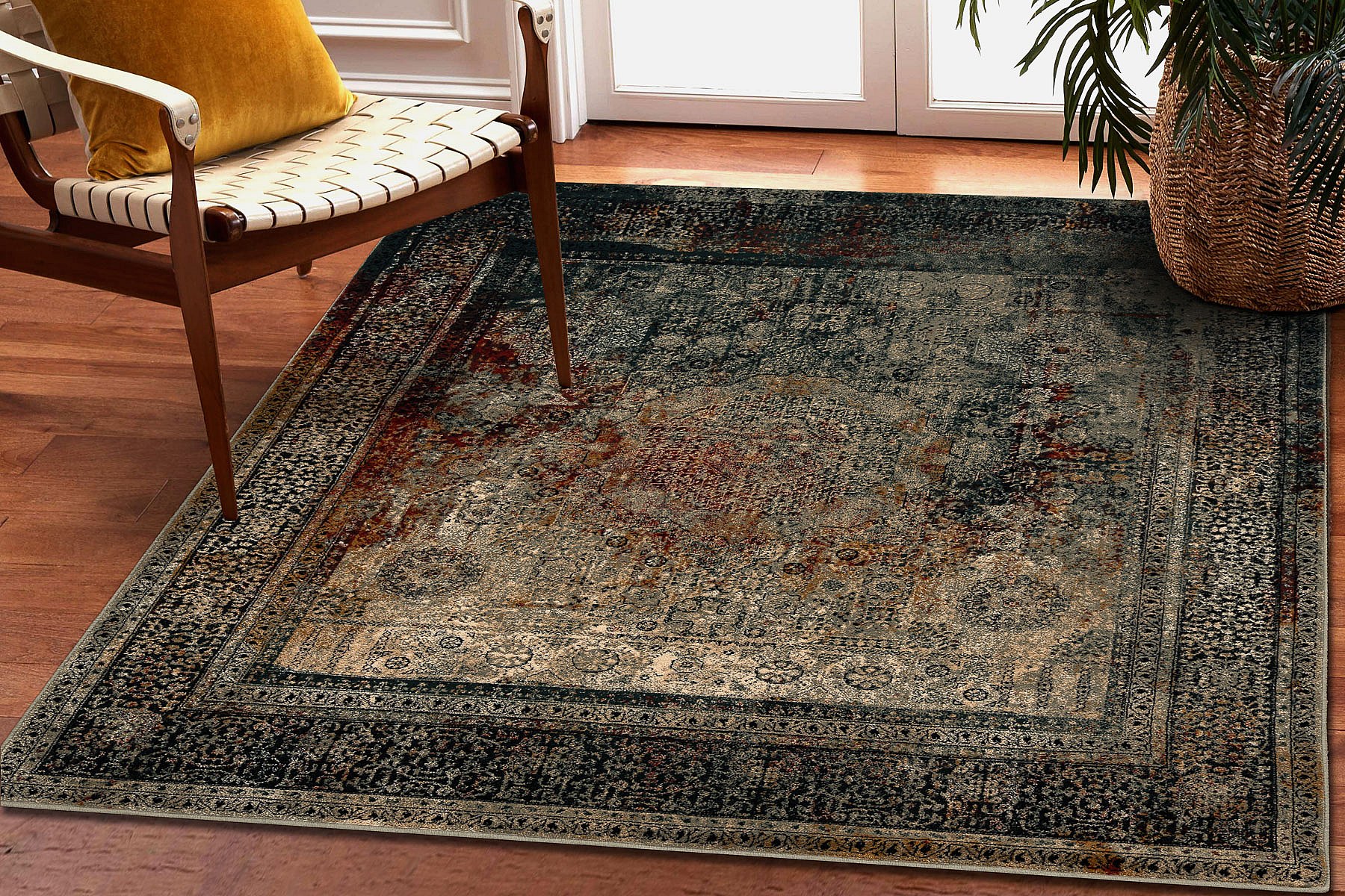 Tappeto di lana OMEGA MAMLUK Piazza - Rosone vintage smeraldo 135x135 cm