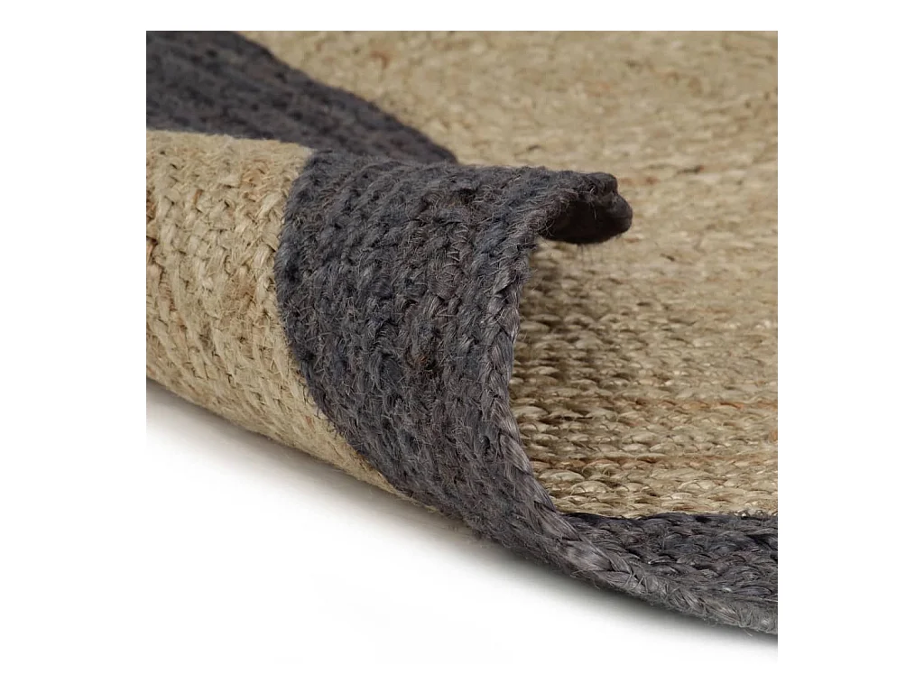 Tappeto in juta fatto a mano con bordo grigio scuro 90 cm