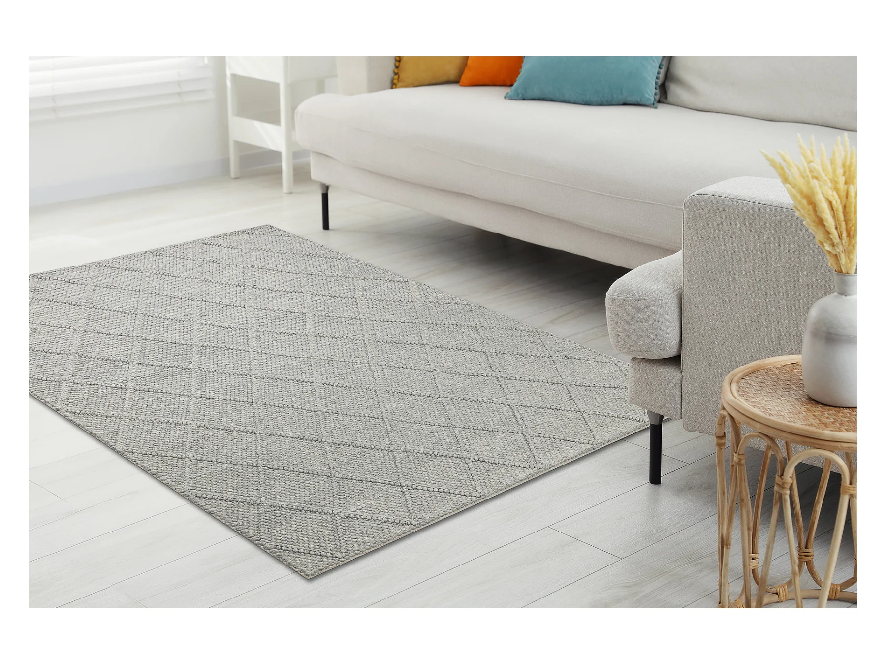 Tappeto in lana TAHAR 99001G grigio - TESSUTO A MANO, rombi, boho 90x150 cm