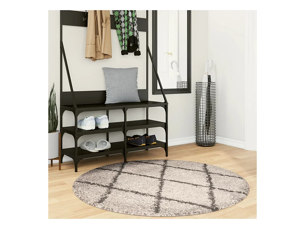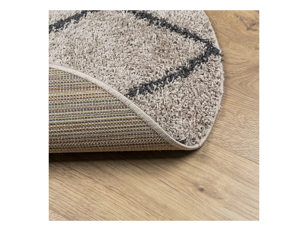 Tappeto moderno a pelo lungo beige e antracite Ø 80 cm