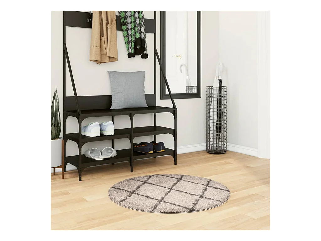 Tappeto moderno a pelo lungo beige e antracite Ø 100 cm