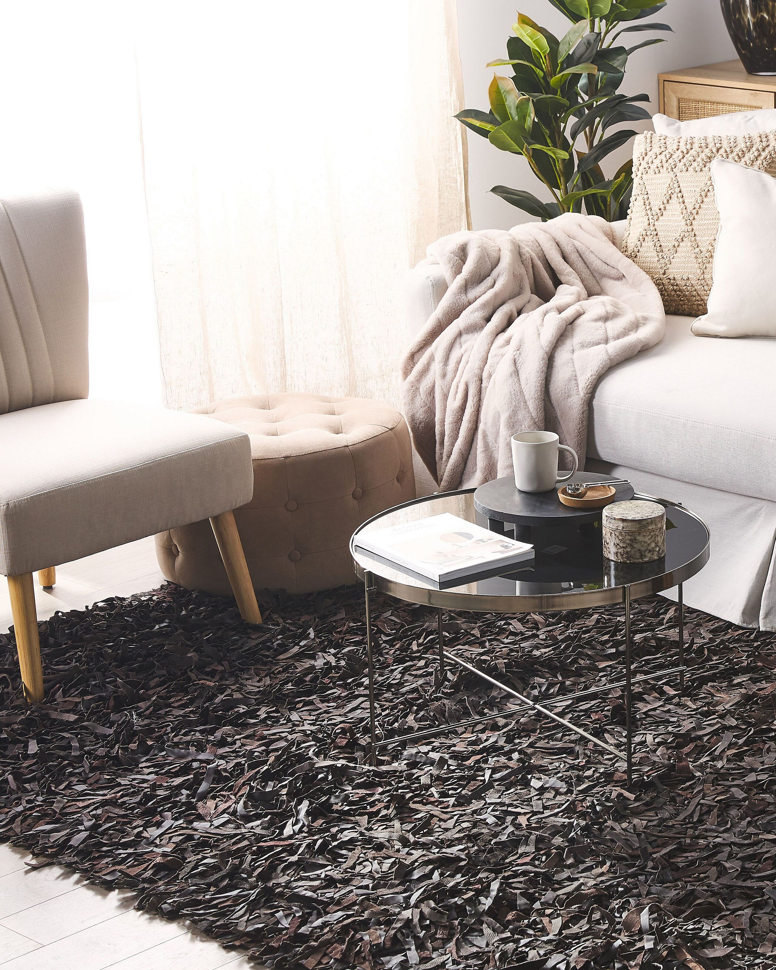 Tappeto shaggy in pelle marrone 140x200 cm MUT
