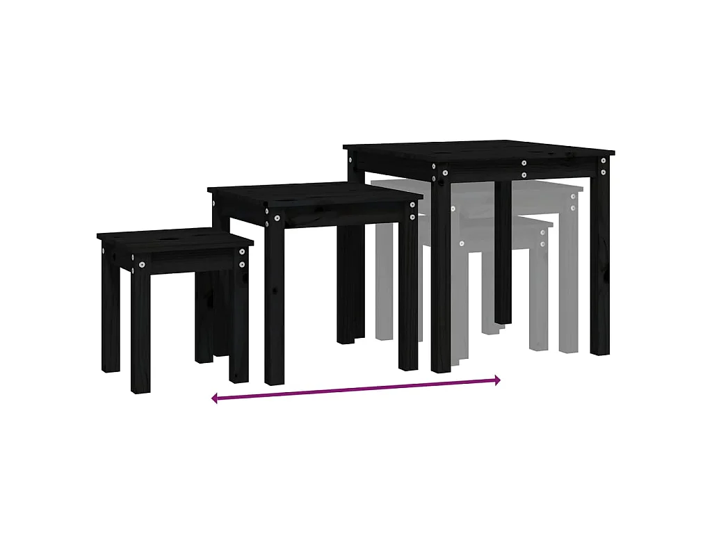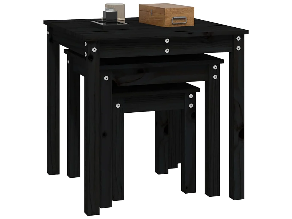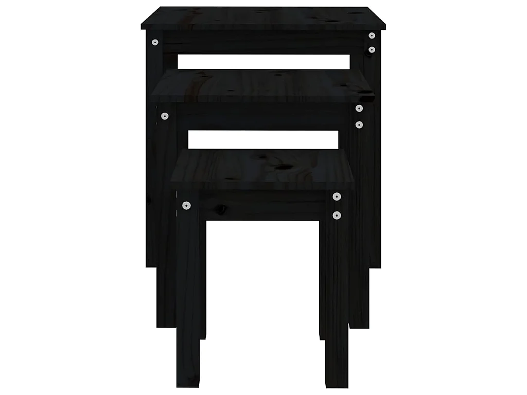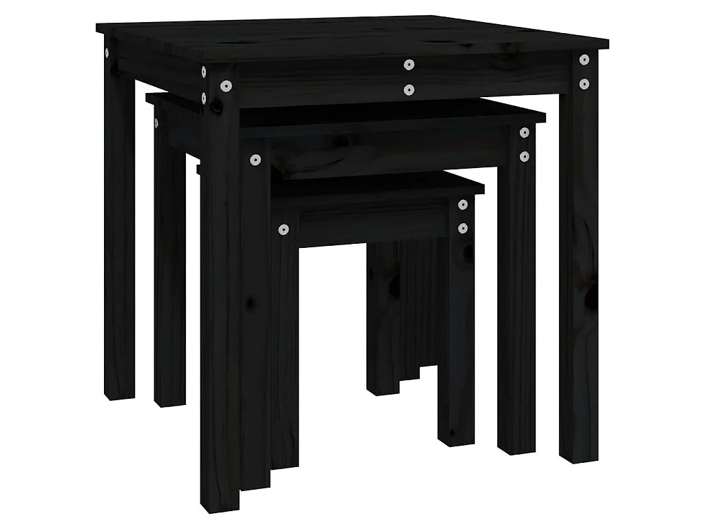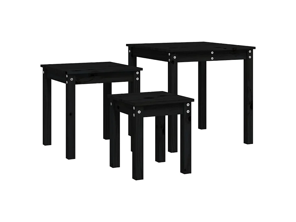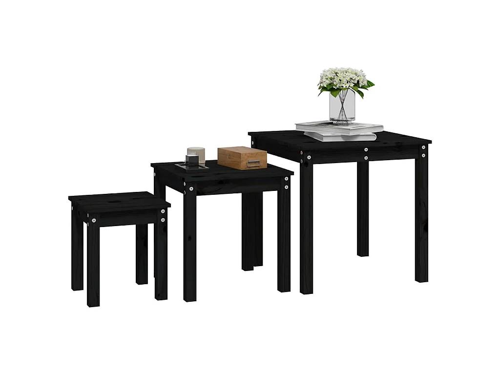 Tavolini a Incastro 3 pz Nero in Legno Massello di Pino