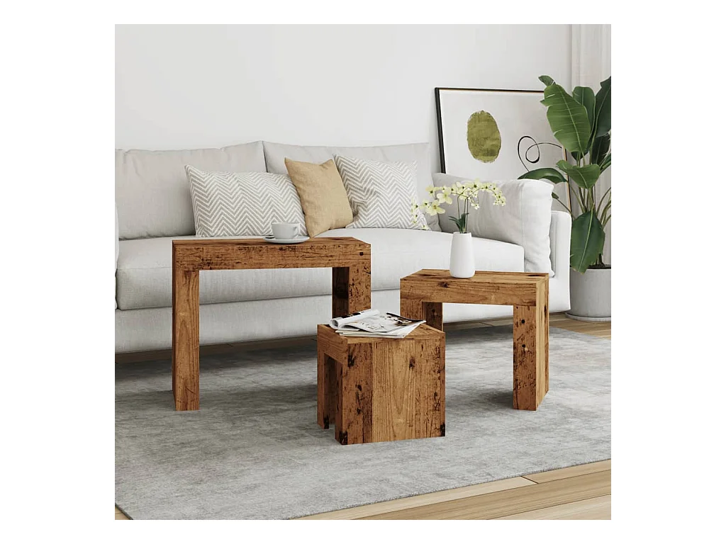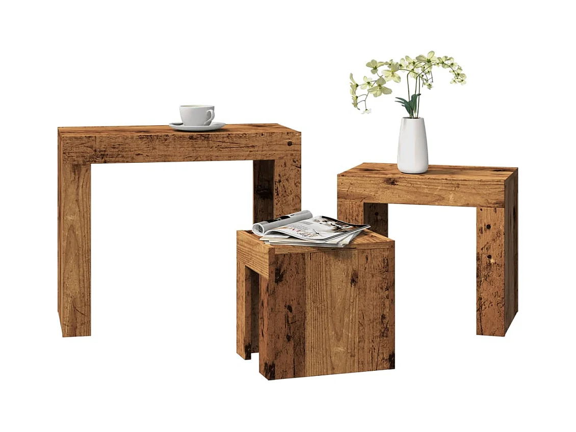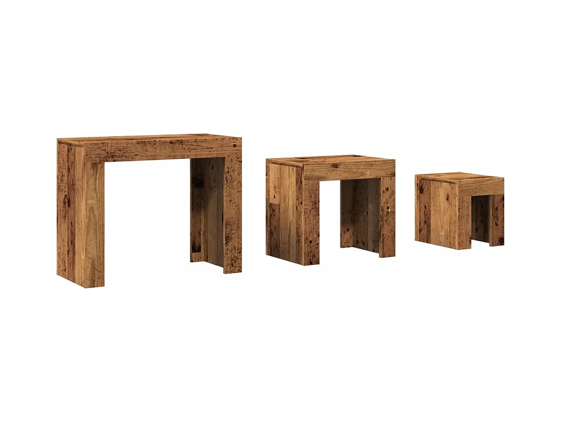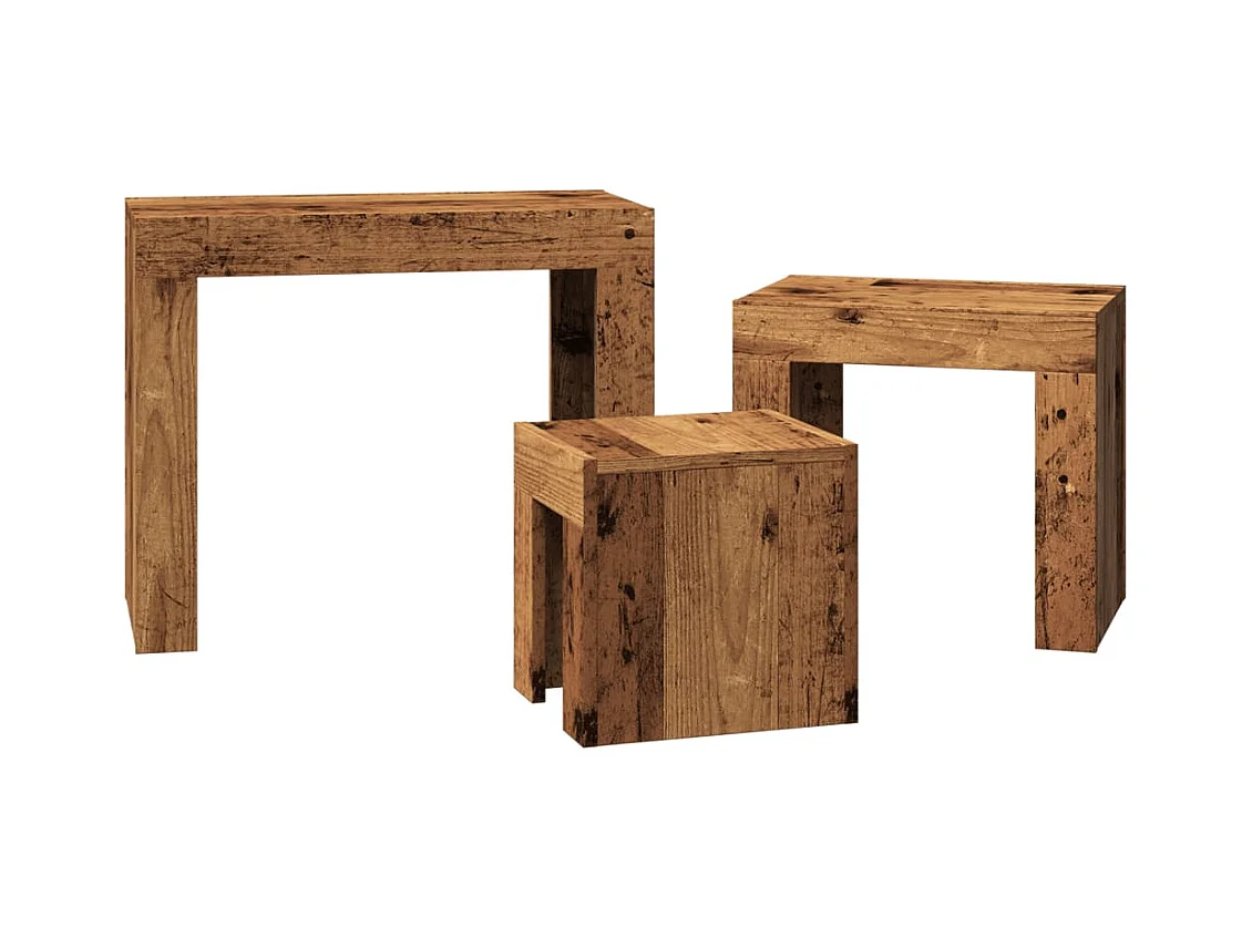 Tavolini Impilabili 3 pz Legno Antico in Truciolato