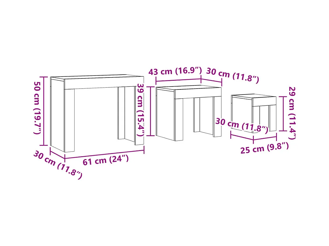 Tavolini Impilabili 3 pz Rovere Artigianale in Truciolato