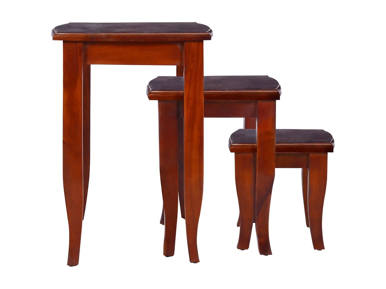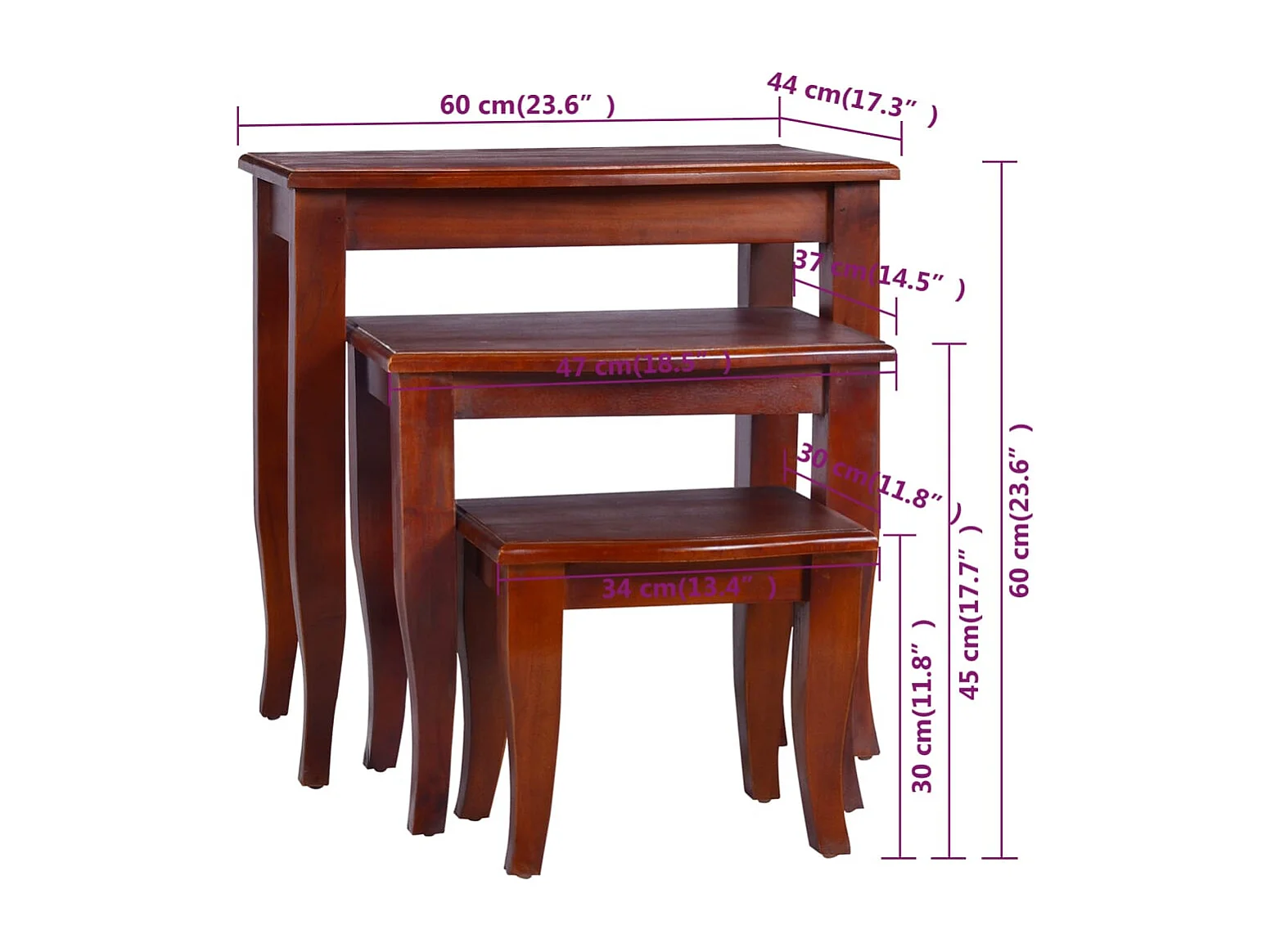Tavolini Impilabili 3 pz Marrone Classico in Legno di Mogano