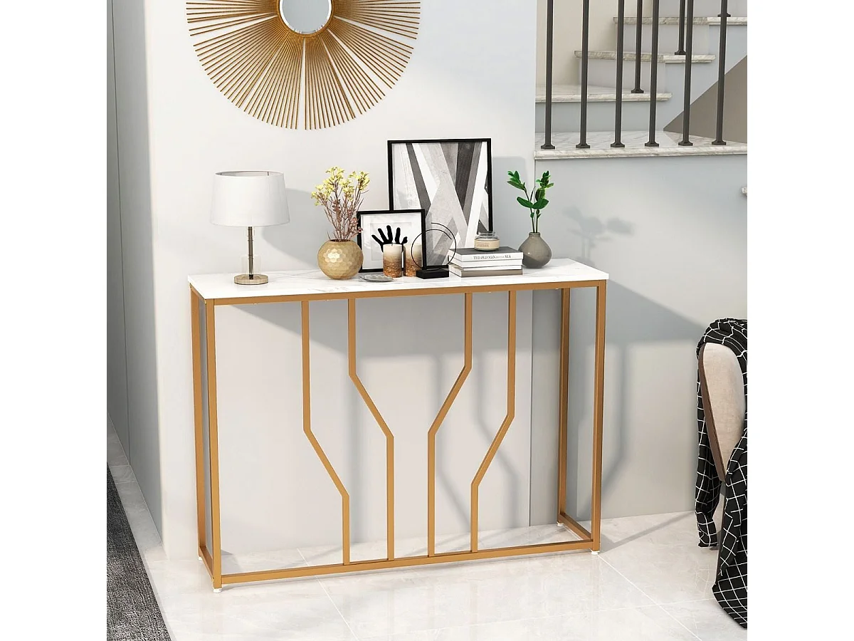Tavolo consolle effetto marmo con piedini regolabili struttura in metallo, Tavolo d'ingresso 100x30x79cm Bianco