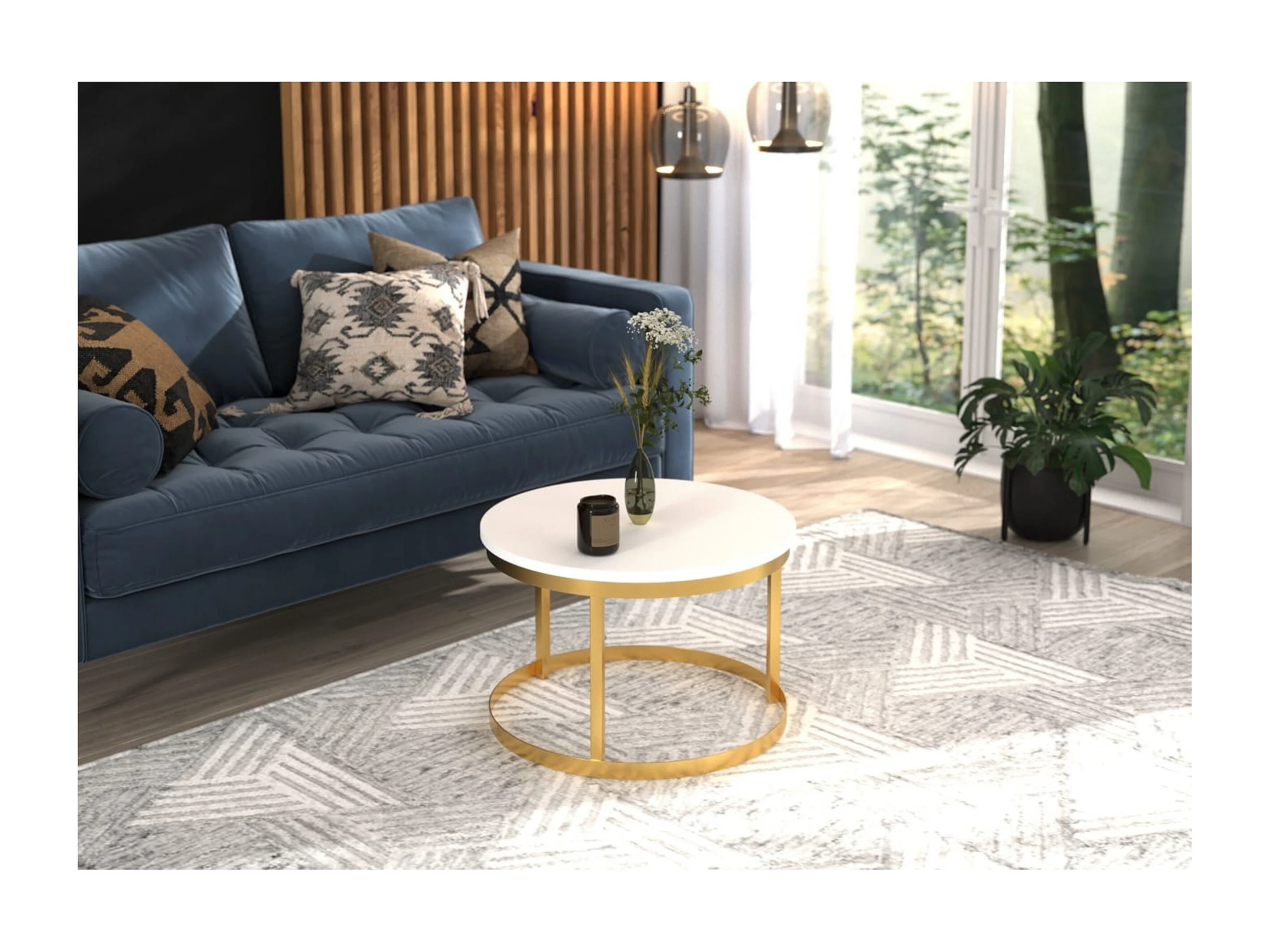 Tavolino da caffè Lian Premium/Metallo e compensato/Oro&Bianco