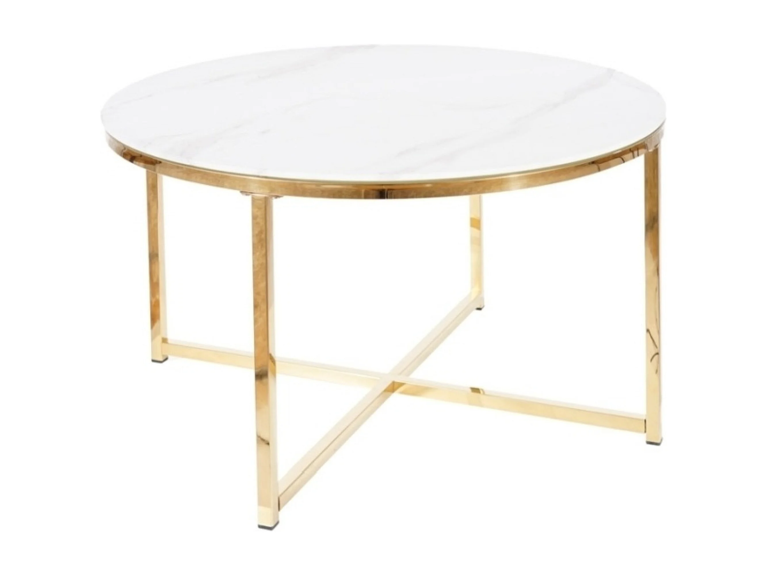 Tavolino Madison/Acciaio/Vetro/Bianco&Oro