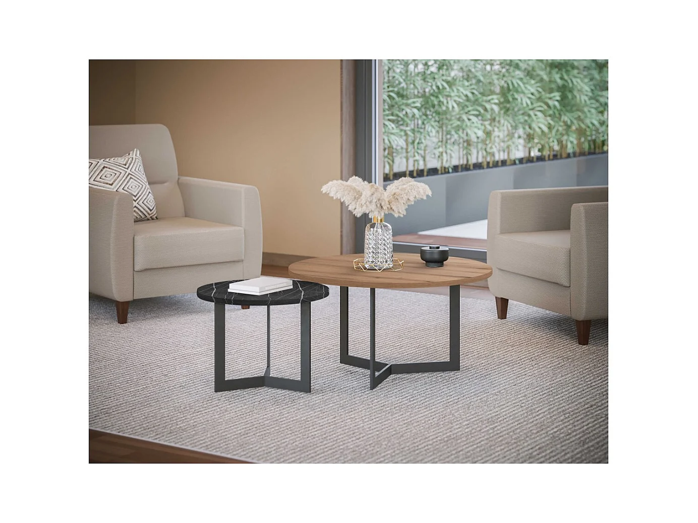 Tavolino da caffè Saturn-Set 2pz/nero/marrone