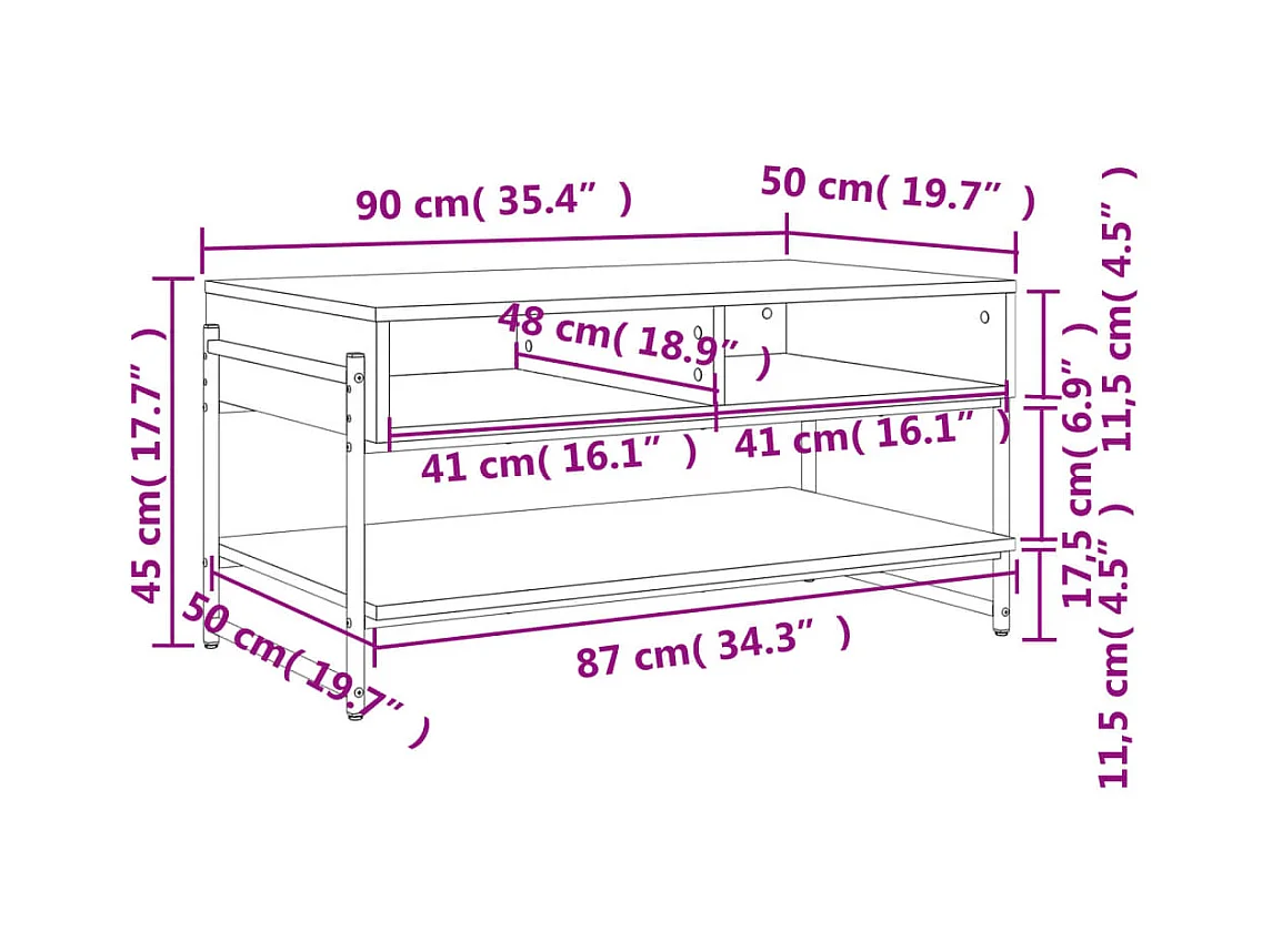 Tavolino da Salotto Rovere Sonoma 90x50x45 cm Legno Multistrato