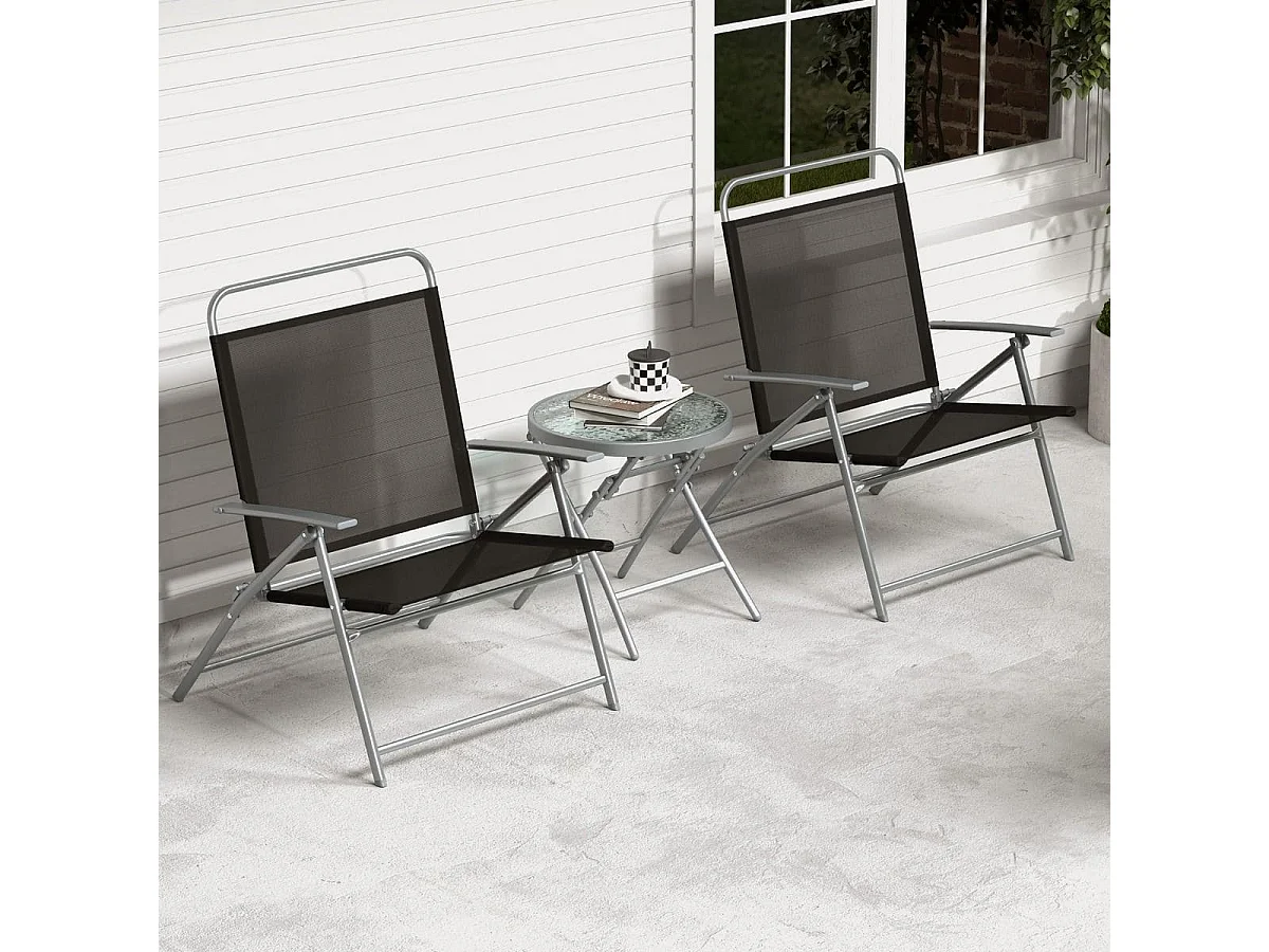 Tavolino e 2 sedie da esterno pieghevoli, Set mobili da giardino 3 pezzi con telaio robusto in metallo