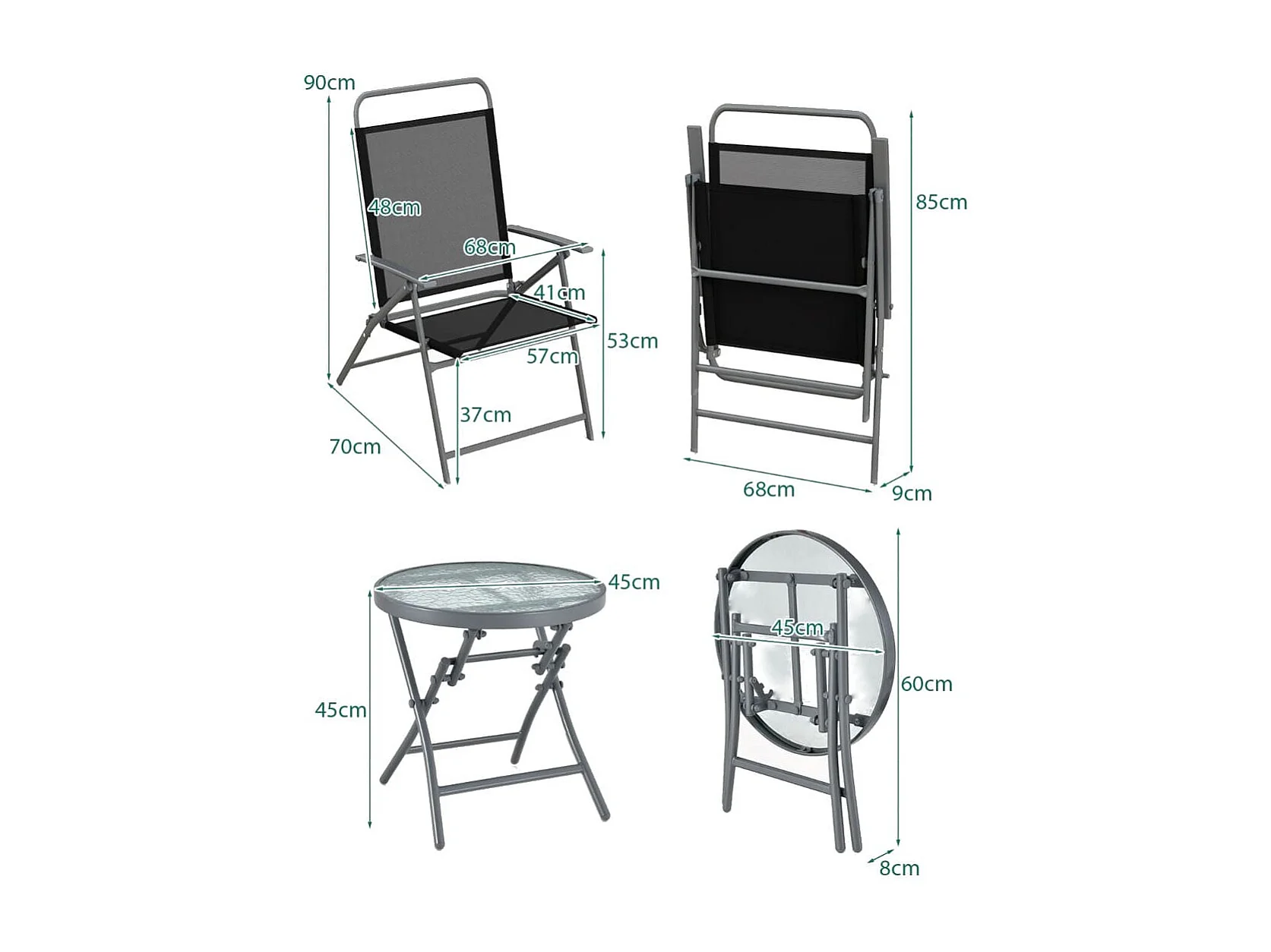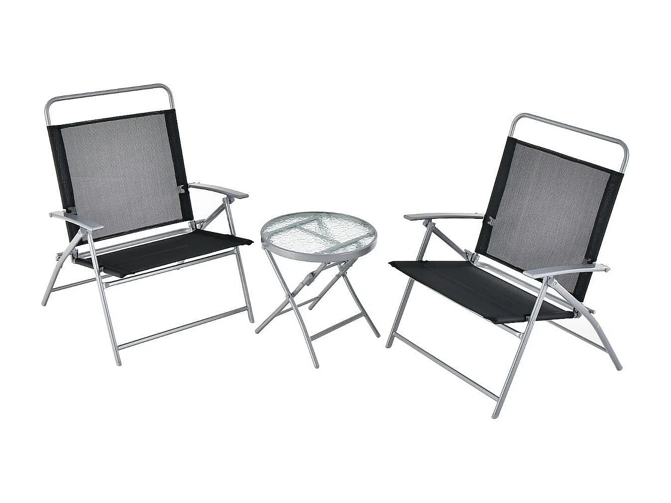 Tavolino e sedie pieghevoli da esterno, Set mobili pieghevole portatile con sedili larghi e telaio in metallo