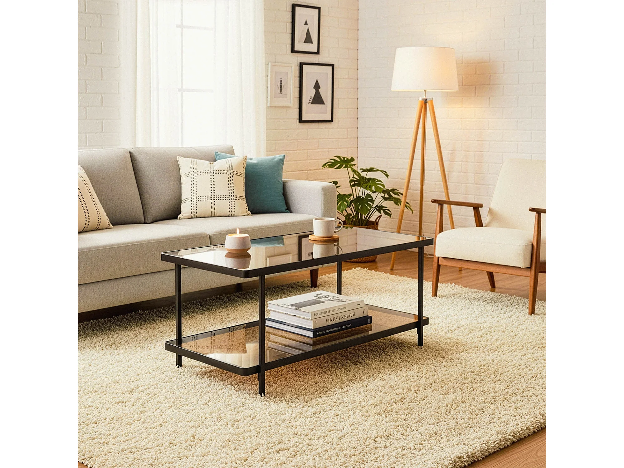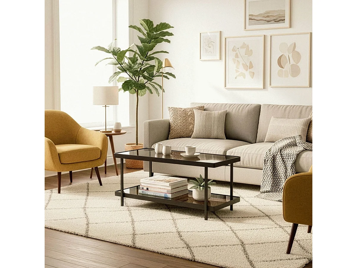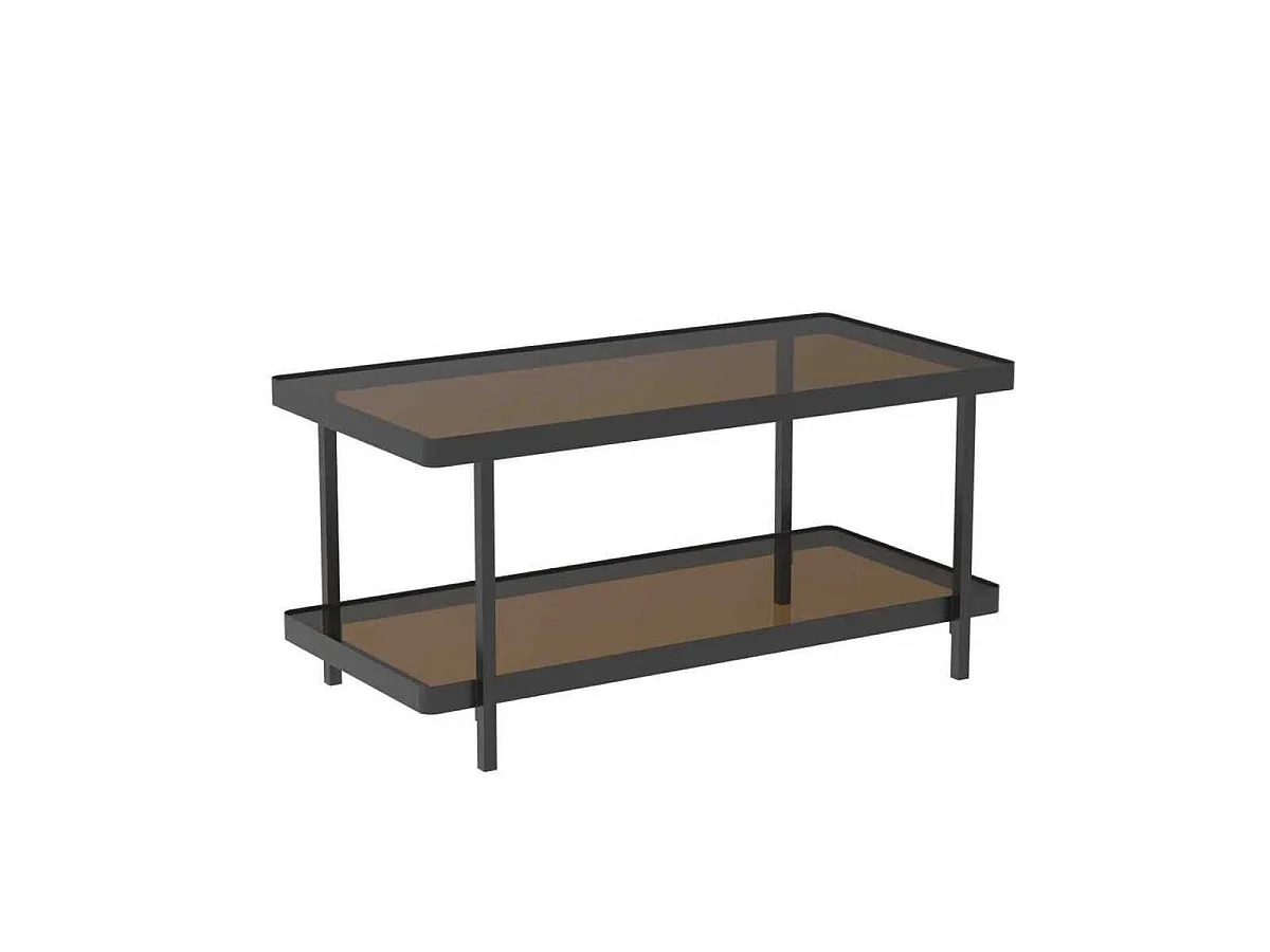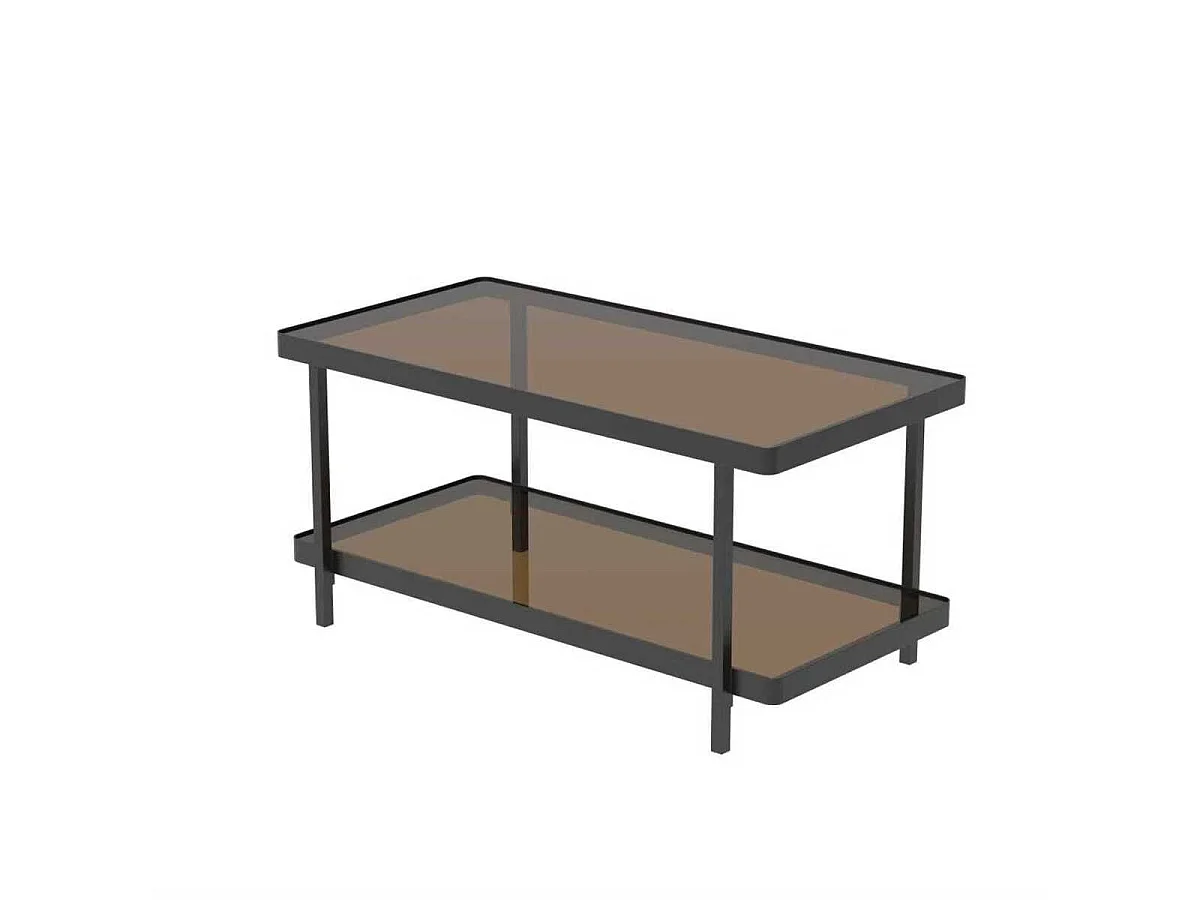 Tavolino in metallo nero con 2 piani in vetro fumé L100 cm - ORA