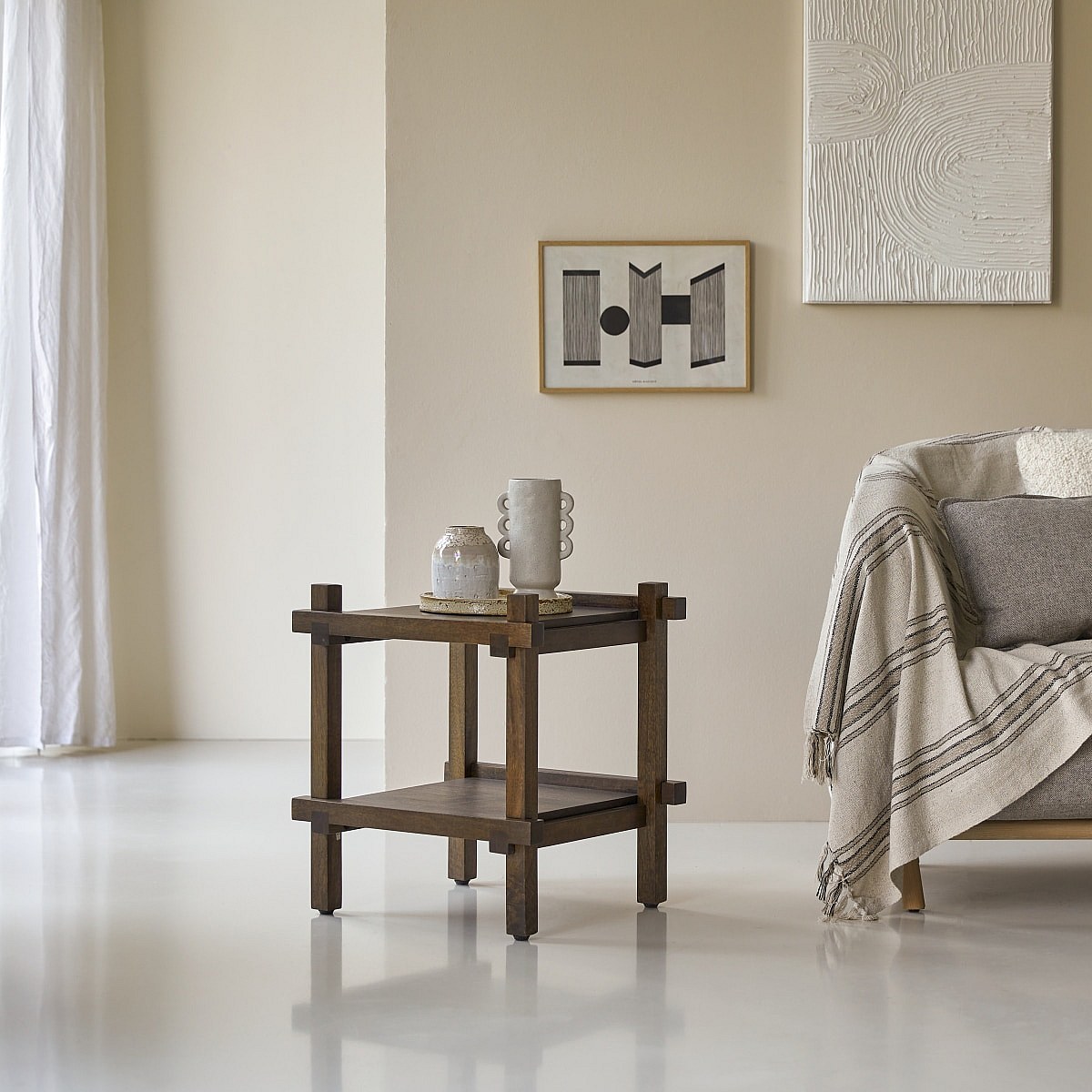 Tavolino 45x45x50 cm in legno massello di mango e ferro
