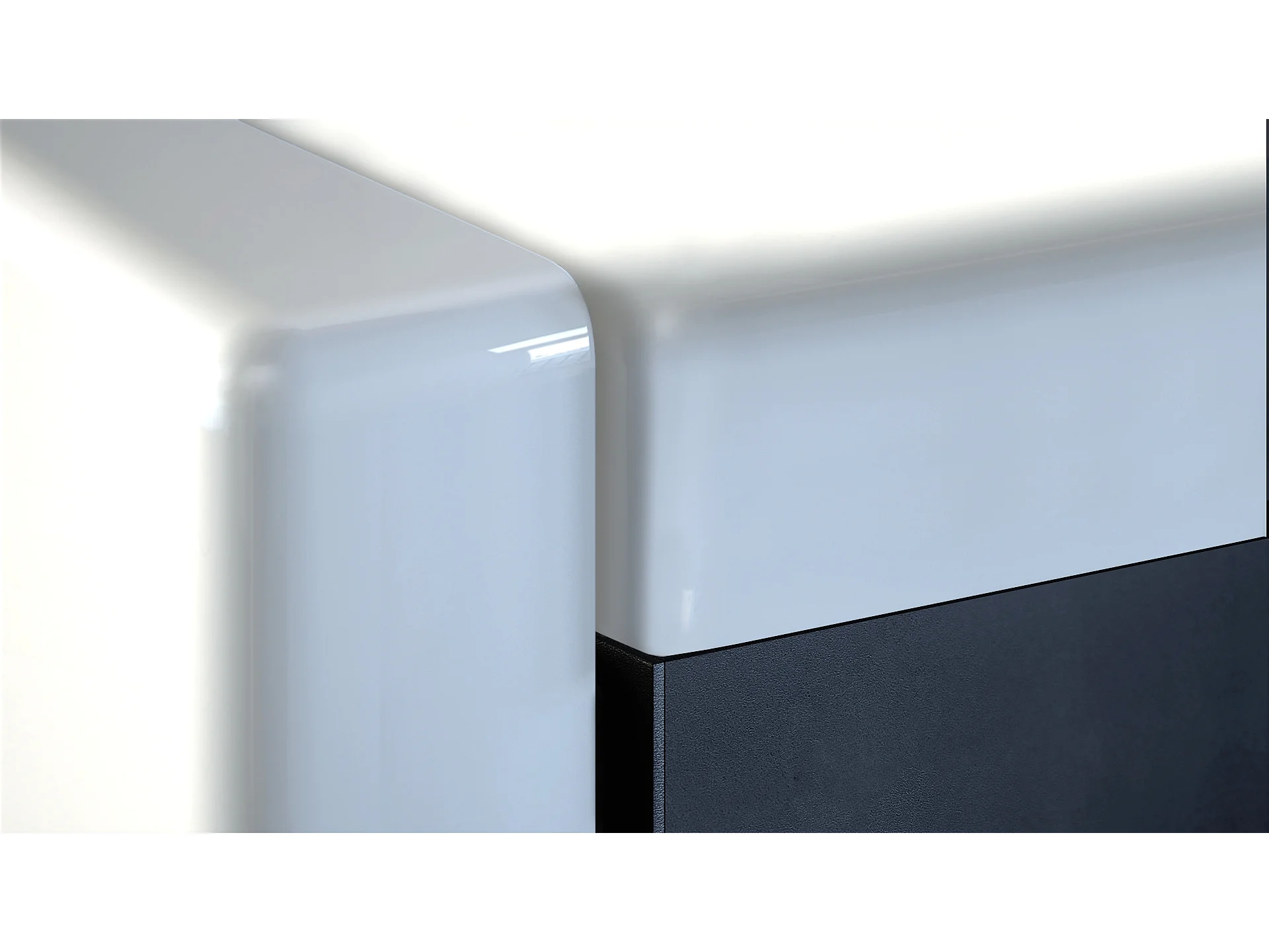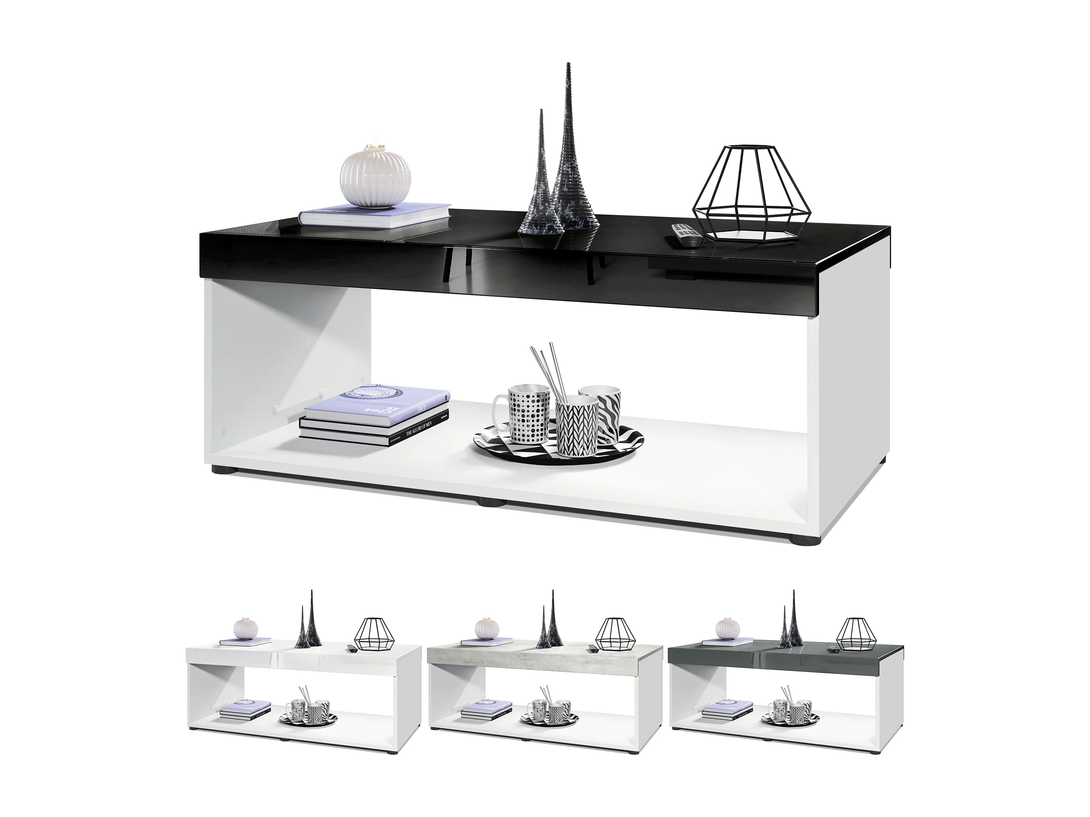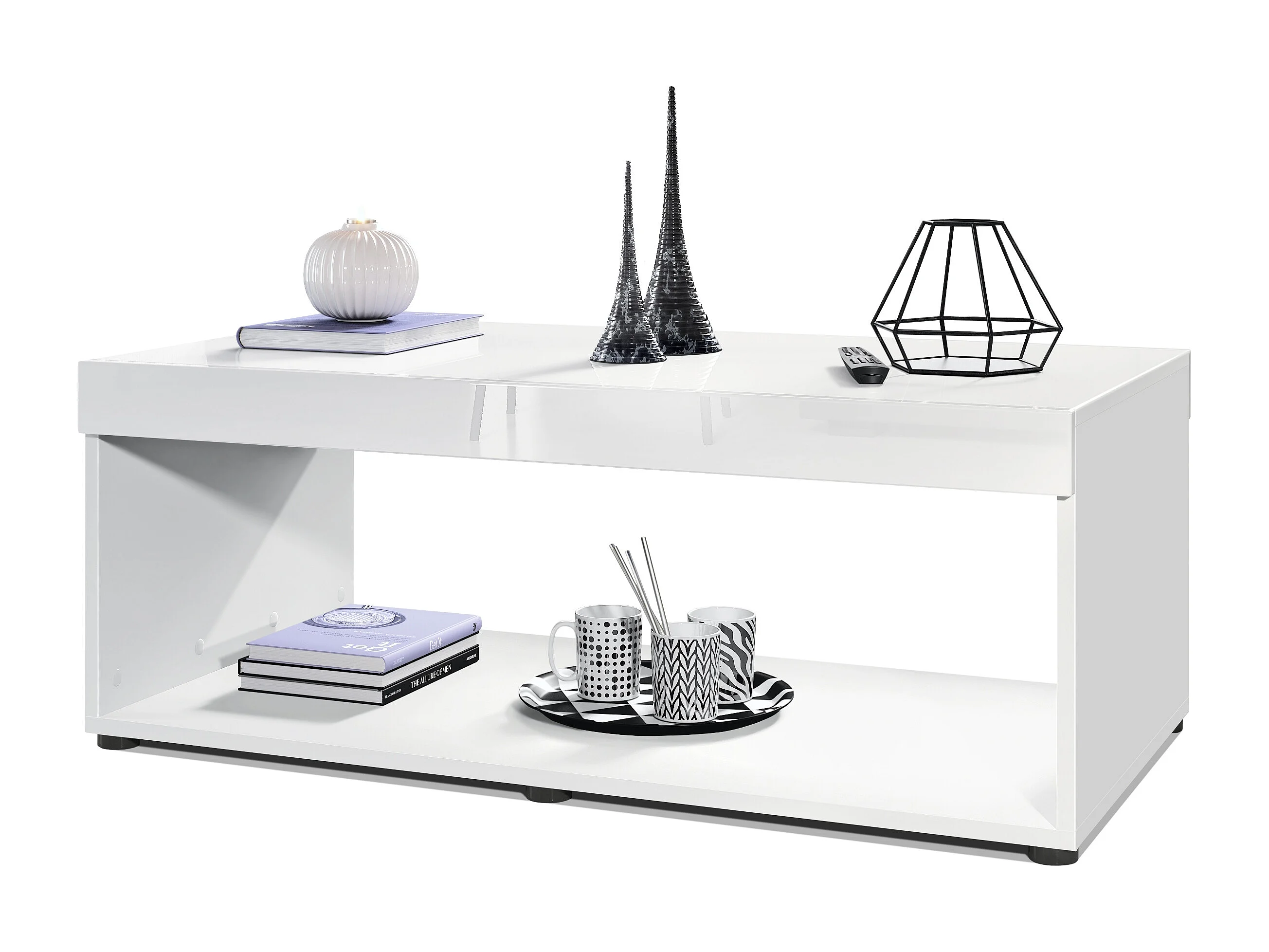 Tavolino Pure, Tavolo da soggiorno a forma di scatola, bianco opaco/bianco lucido (104 x 40,5 x 58 cm)