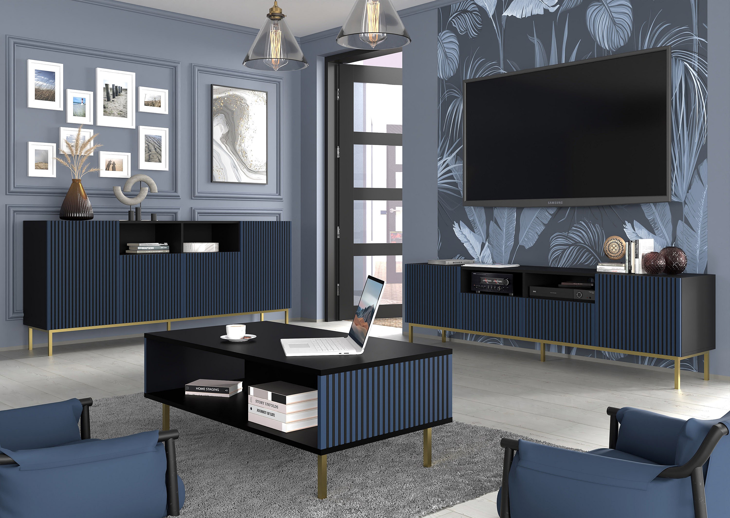 Tavolino RavennaF 90x60x45 Nero & Blu reale & Oro