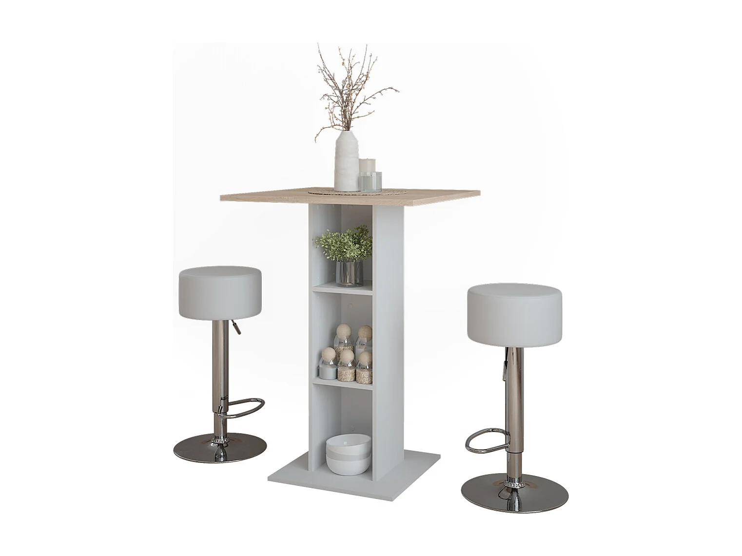 tavolo bar con sgabelli bianco/sonoma 75x75x106 repose