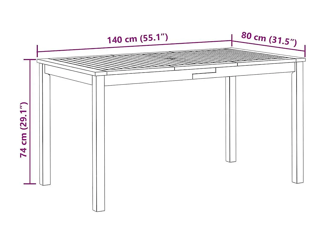 Tavolo da Giardino 140x80x74 cm in Legno Massello di Acacia