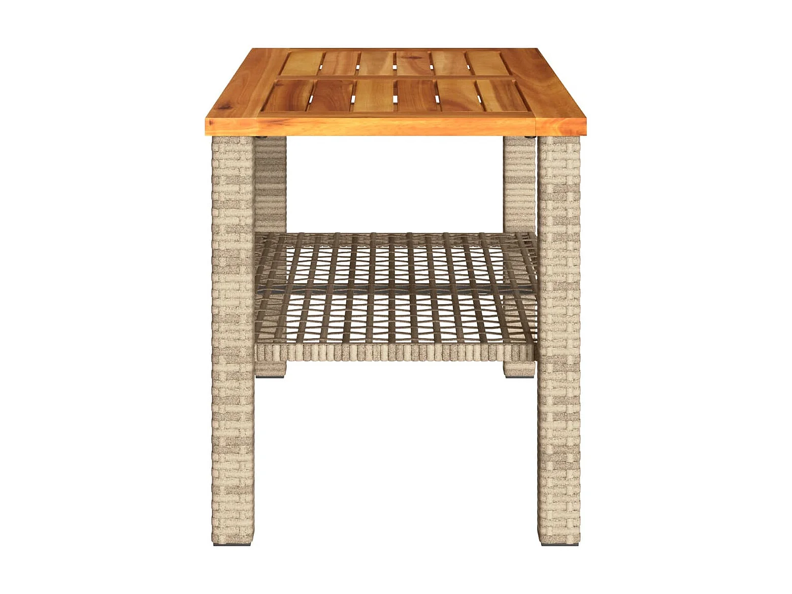 Tavolo da giardino beige 70x38x42 cm in resina intrecciata e legno di acacia