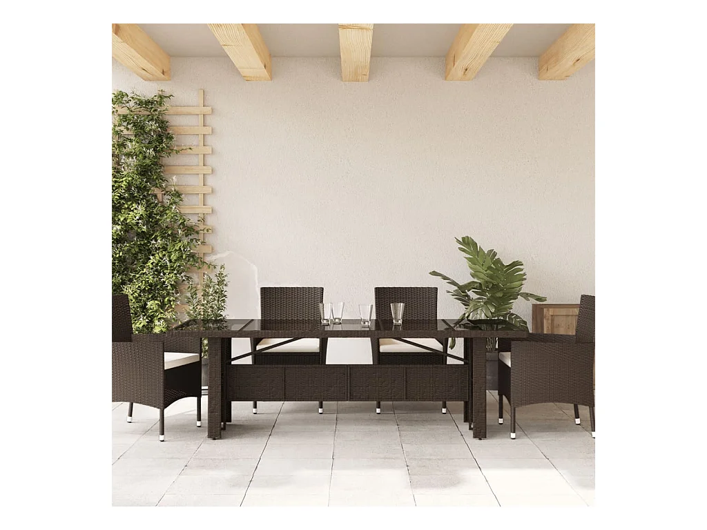 Tavolo da giardino marrone 190x90x75 cm Vetro temperato/resina intrecciata