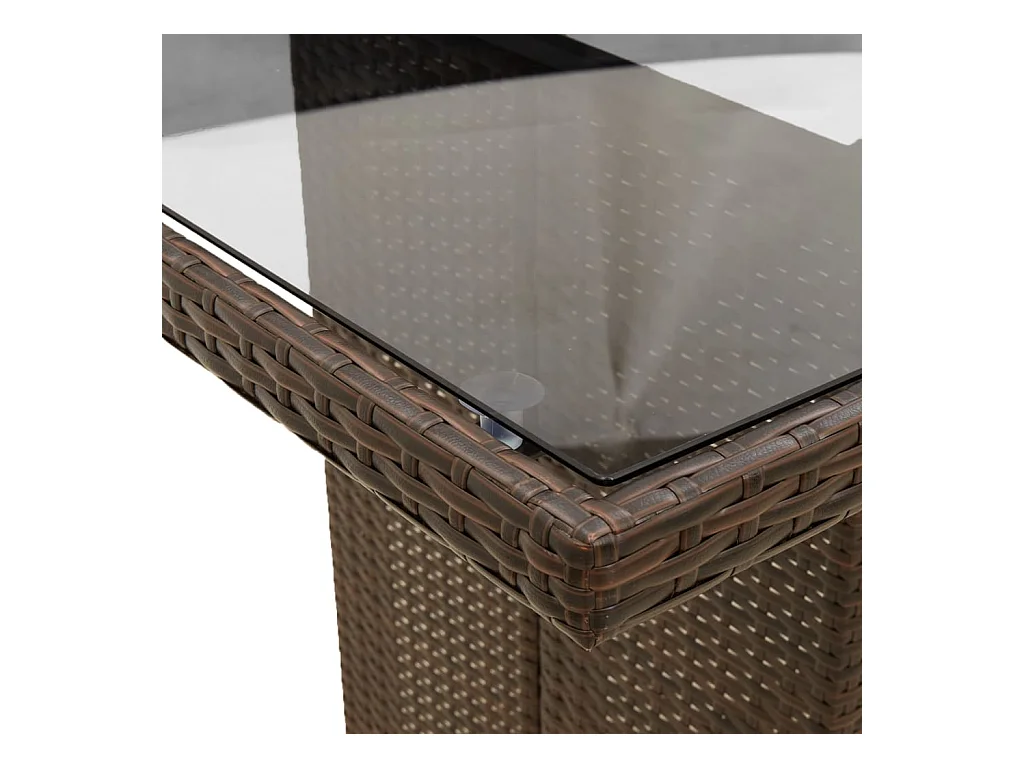 Tavolo da giardino con piano in vetro marrone e resina intrecciata
