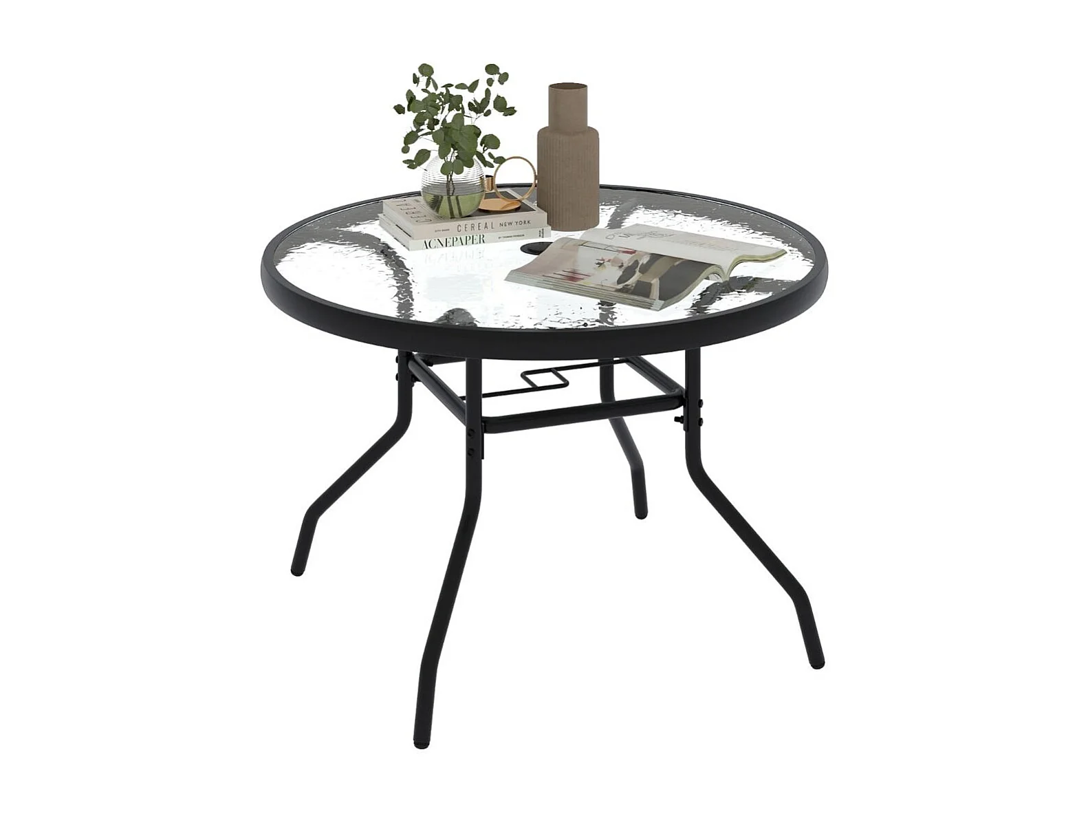 Tavolo da giardino Ø 70 cm con foro per ombrellone e piano in vetro tavolino da esterno tavolino rotondo tavolo da balcone