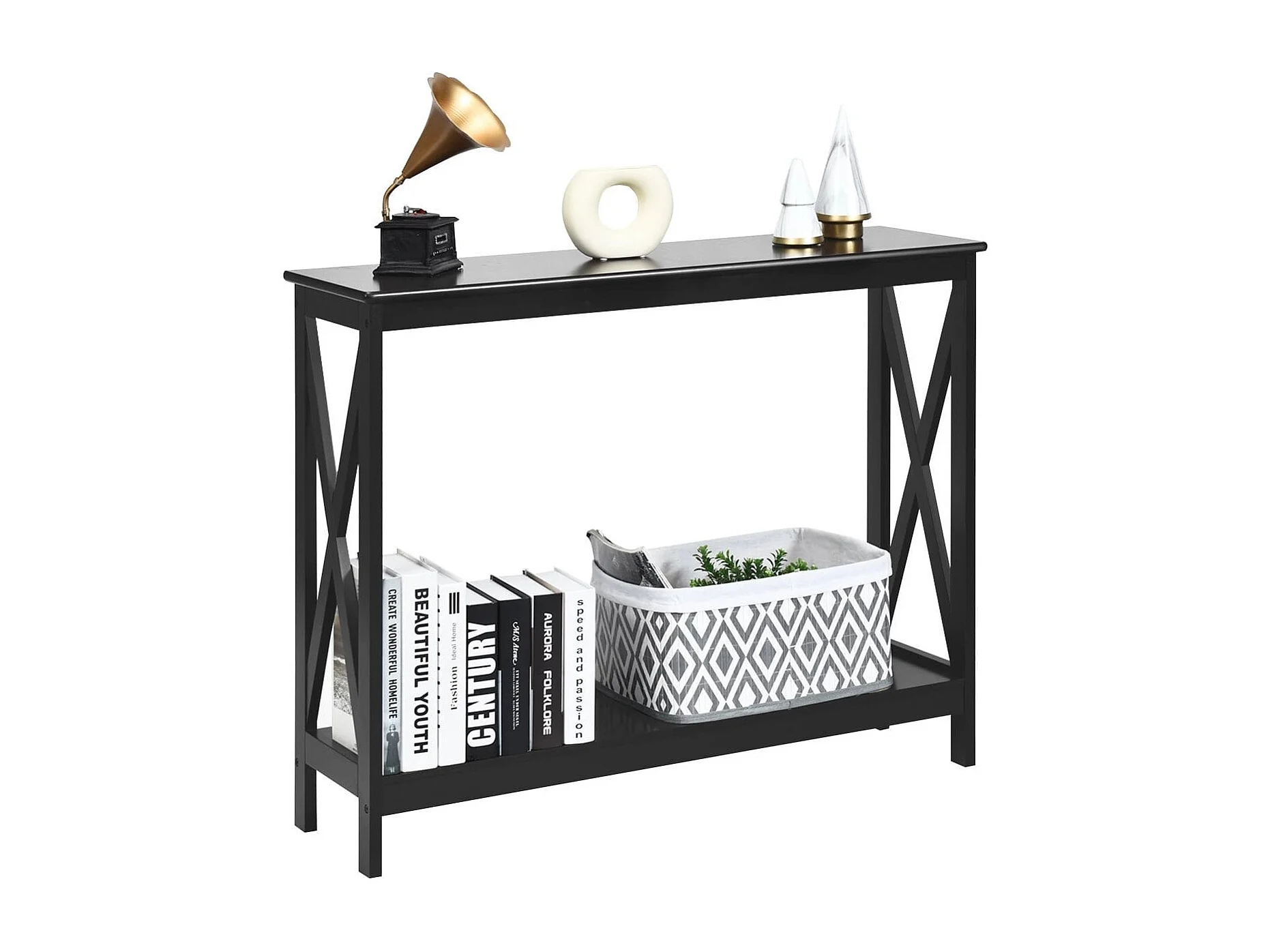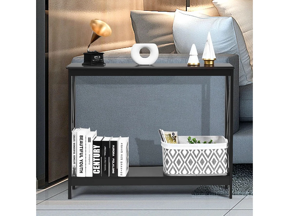Tavolo consolle con ripiani nero 100x30x80 cm