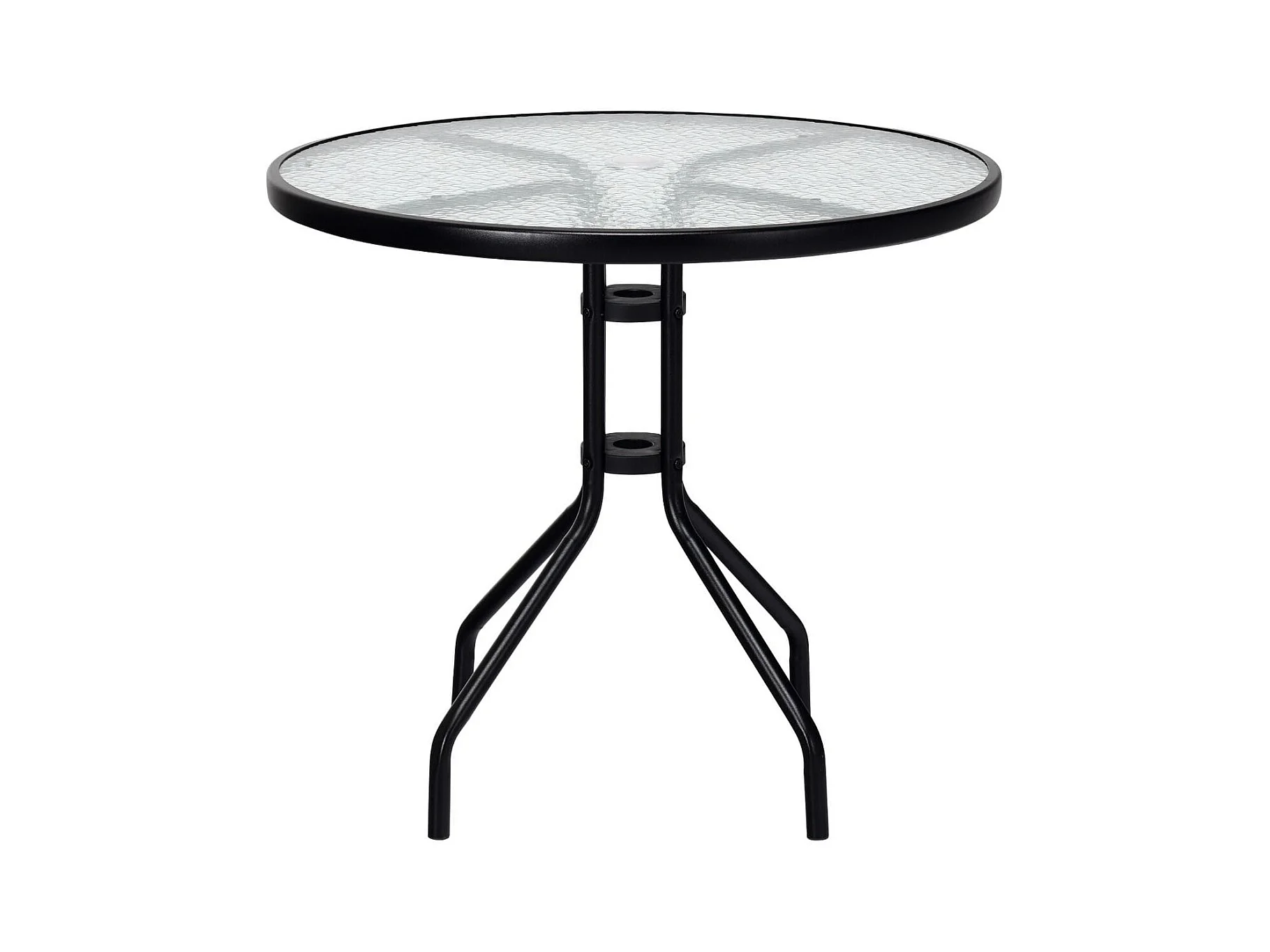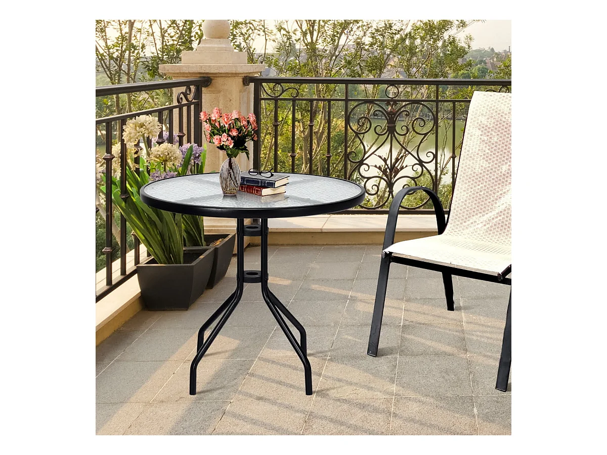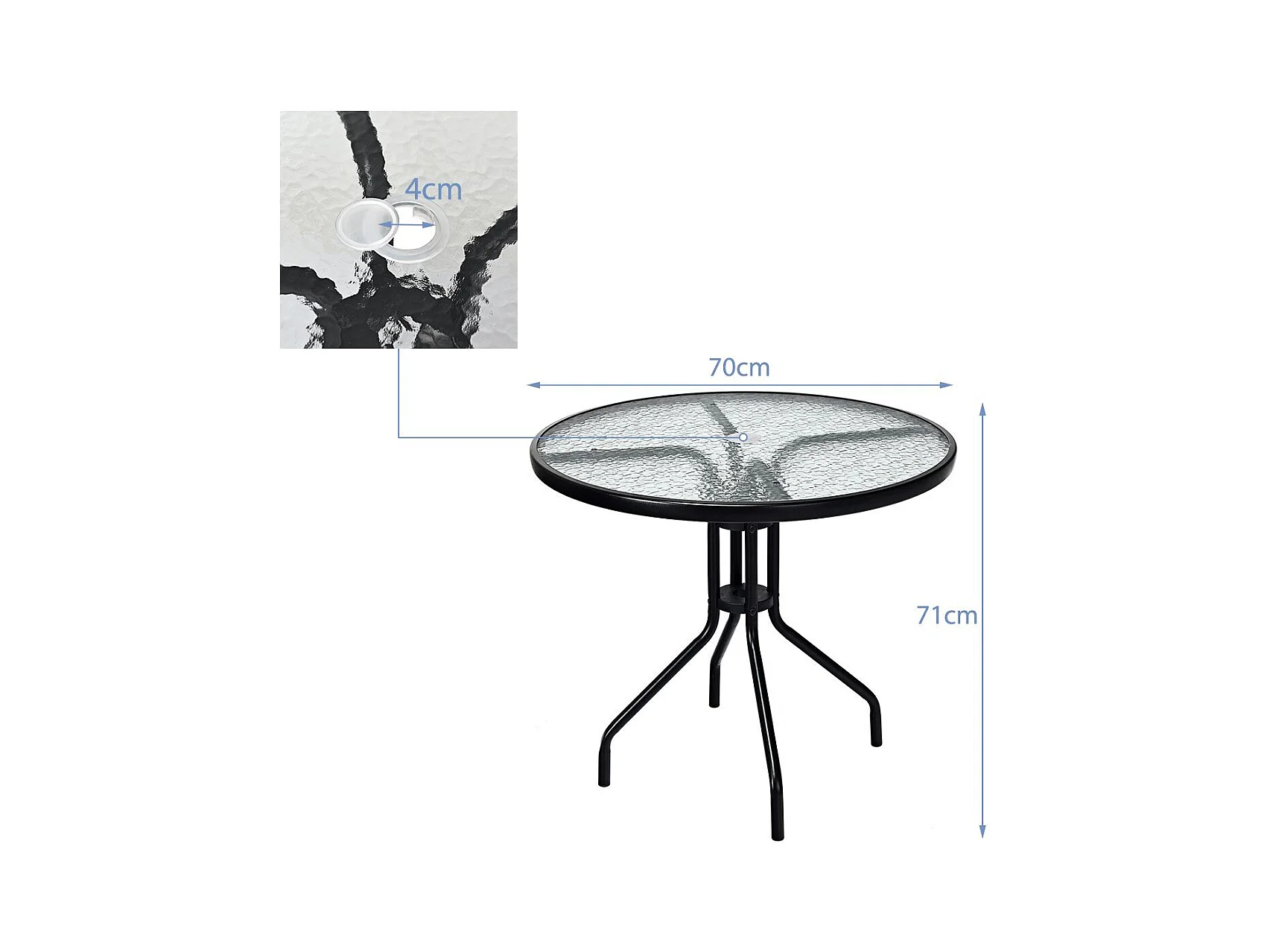 Tavolo da patio da 70cm con piano in vetro temperato gambe in metallo foro per l'ombrellone, Tavolino rotondo da caffè