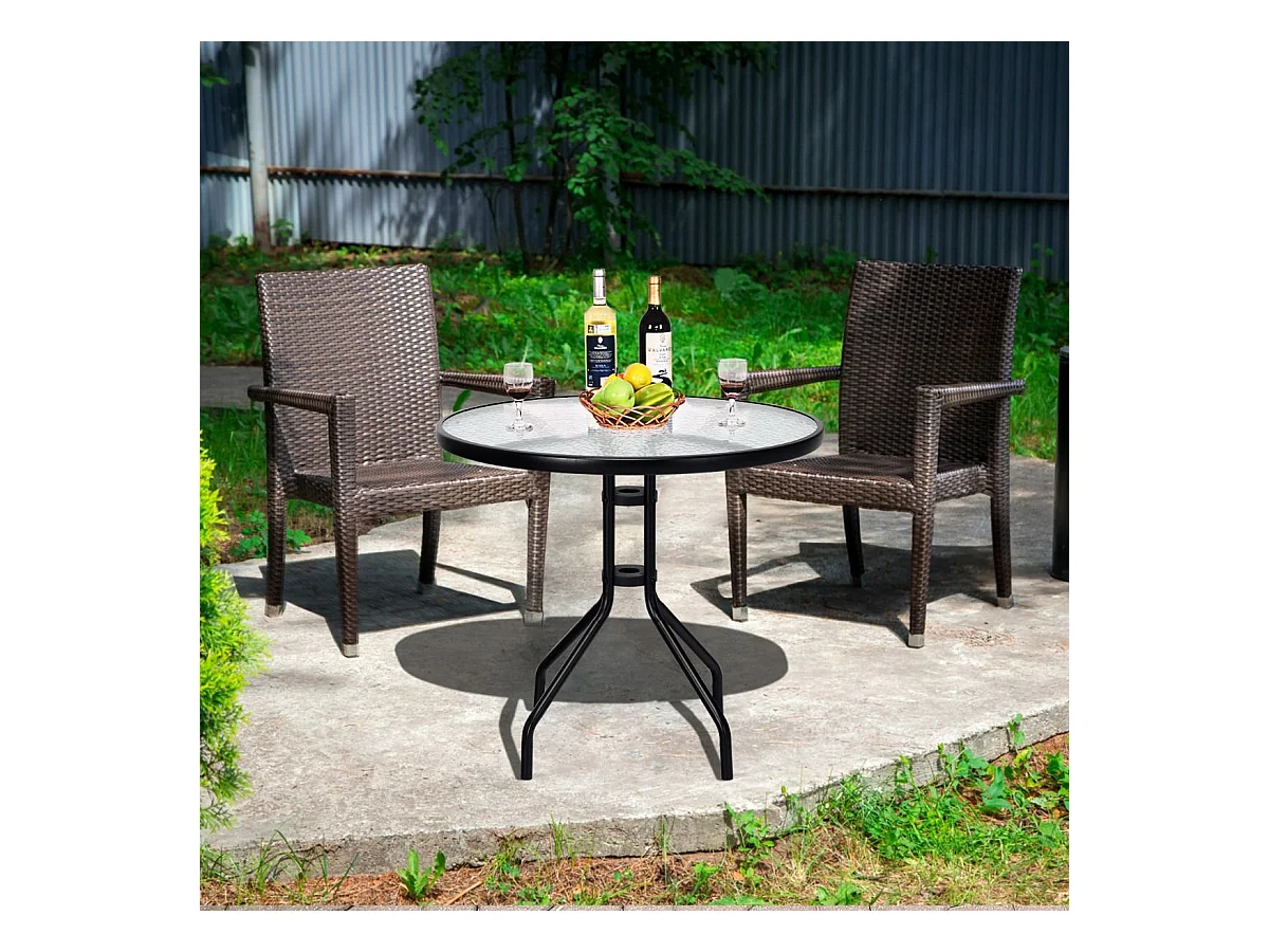 Tavolo da bar per giardino con piano in vetro temperato e telaio in metallo resistente, Tavolo rotondo alto 97cm Nero
