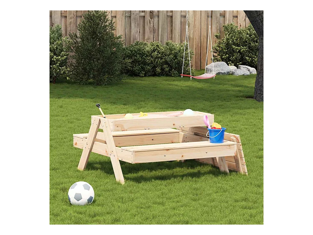 Tavolo da picnic con sabbiera per bambini, in pino massiccio