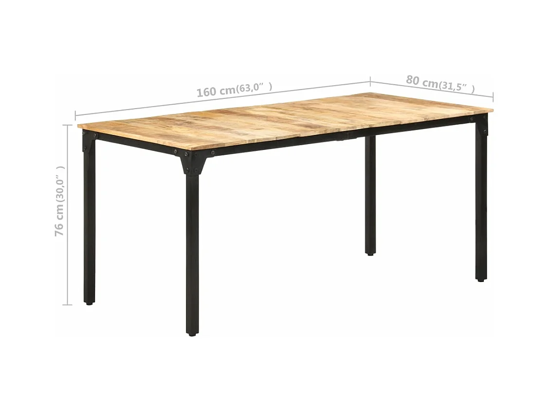 Tavolo da Pranzo 160x80x76 cm in Legno di Mango Grezzo