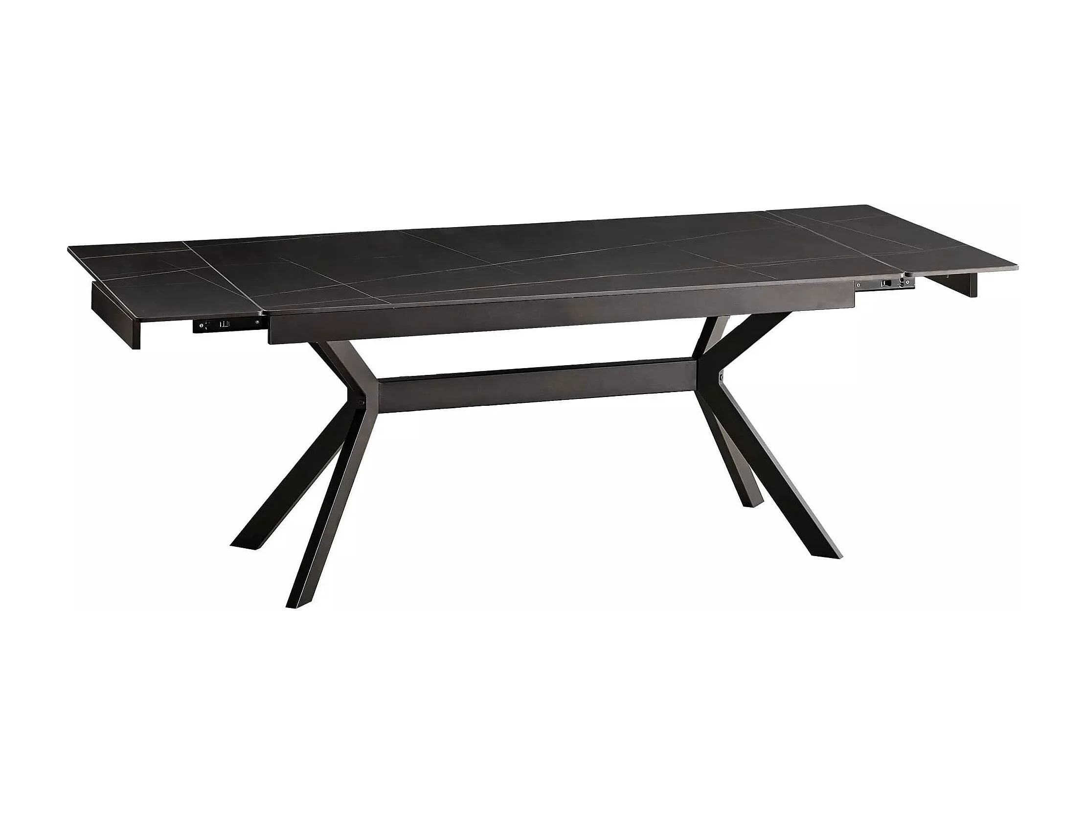 Tavolo in ceramica nero, base in metallo nero, allungabile 140x90 - 200x90 cm - BONIFACIO