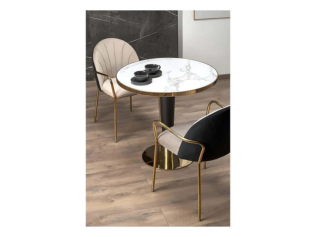 Tavolo da pranzo Morata (79x74)/Rotondo/MDF/Design in marmo/Bianco e oro