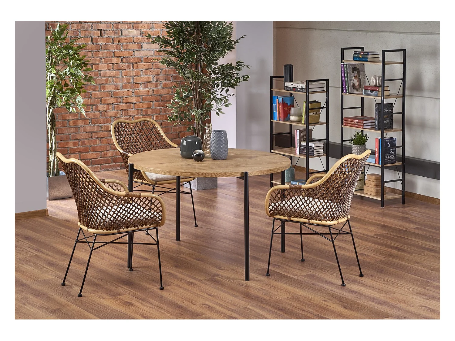 Tavolo da pranzo Ritmo (120x77)/Piano in legno + impiallacciatura/Rotondo/Marrone e nero