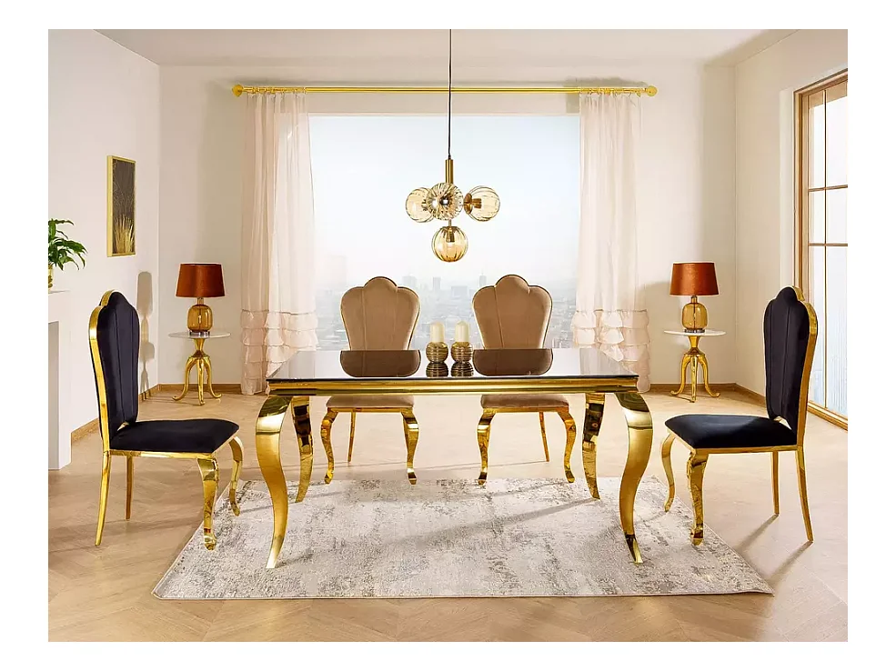 Tavolo da pranzo Prince (90x150)/vetro/metallo/Oro&Nero