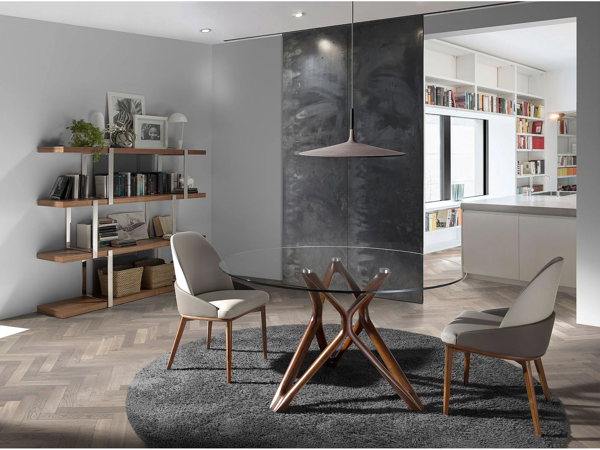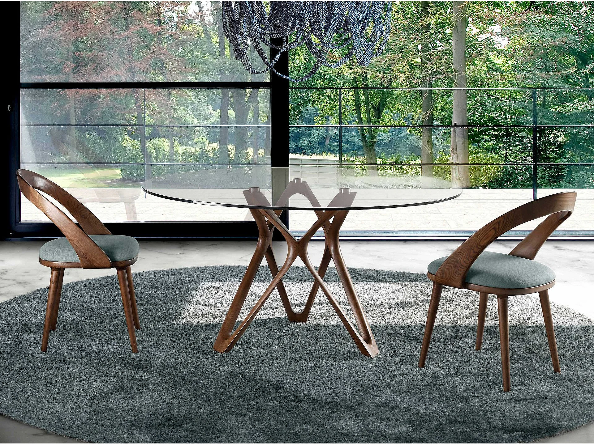 Tavolo da pranzo rotonda vetro temperato e noce 1108-Ø120 ANGEL CERDA