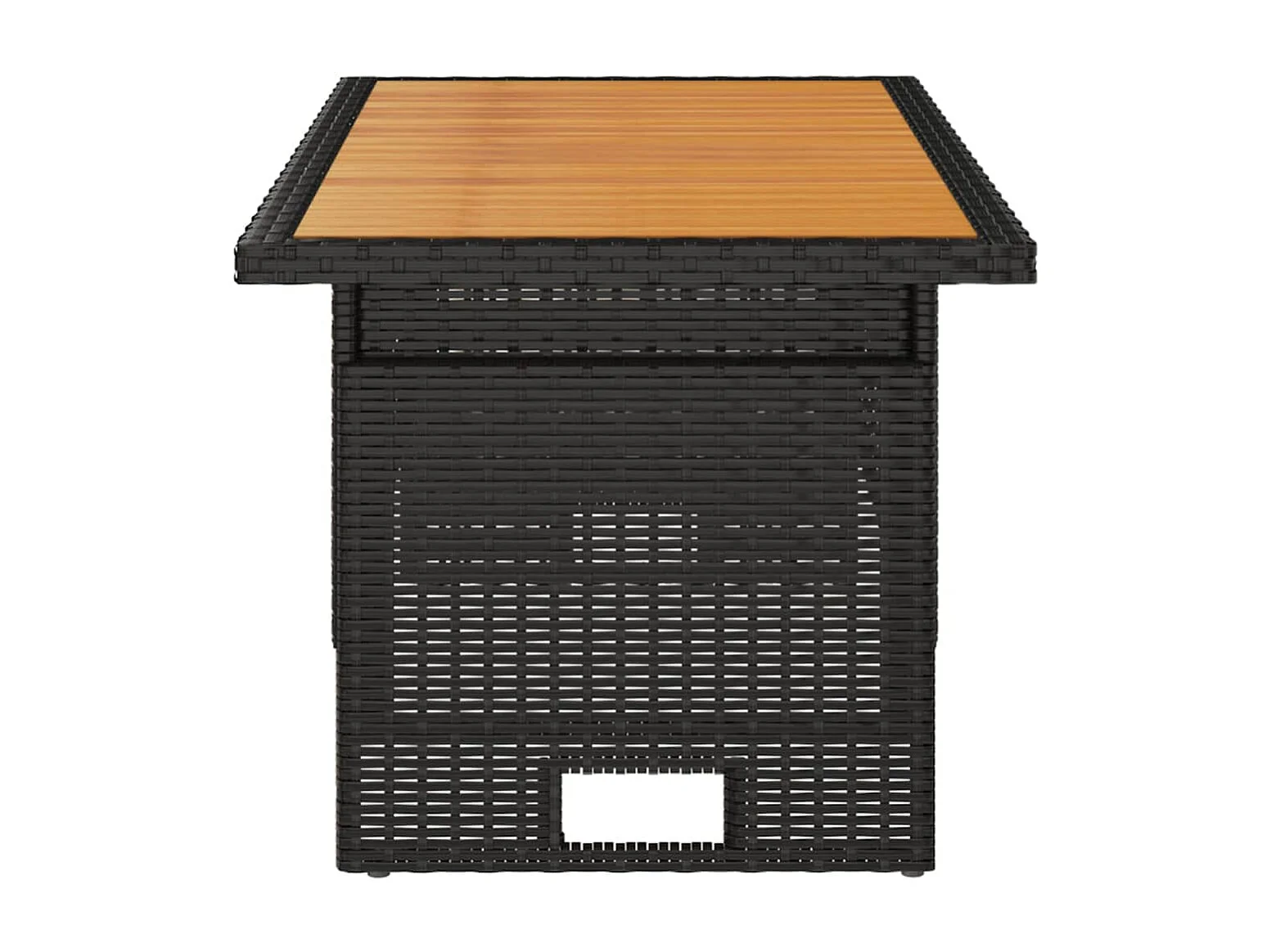 Tavolo Giardino Nero 100x50x43/63cm Massello Acacia Polyrattan