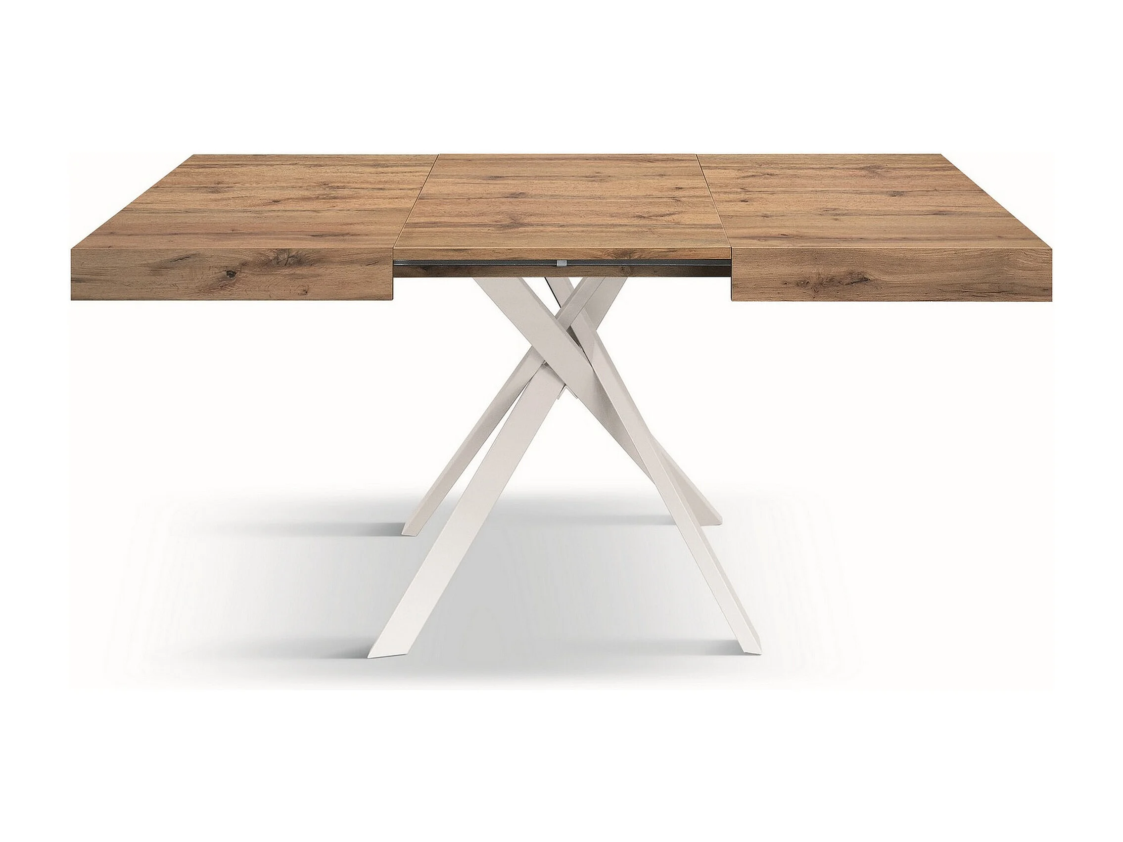 Tavolo legno rovere rustico, gambe metallo bianco 95x90-145x90cm - FORTE DEI MARMI
